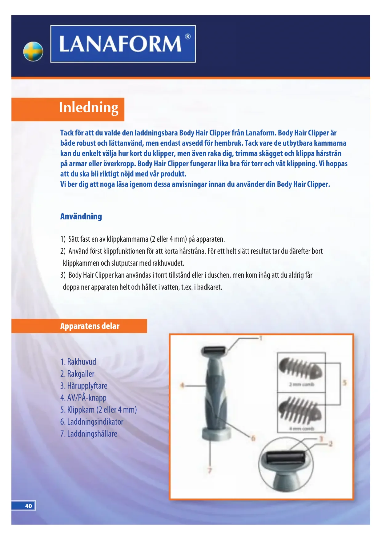 BRUKSANVISNING Body Hair Clipper LANAFORM
