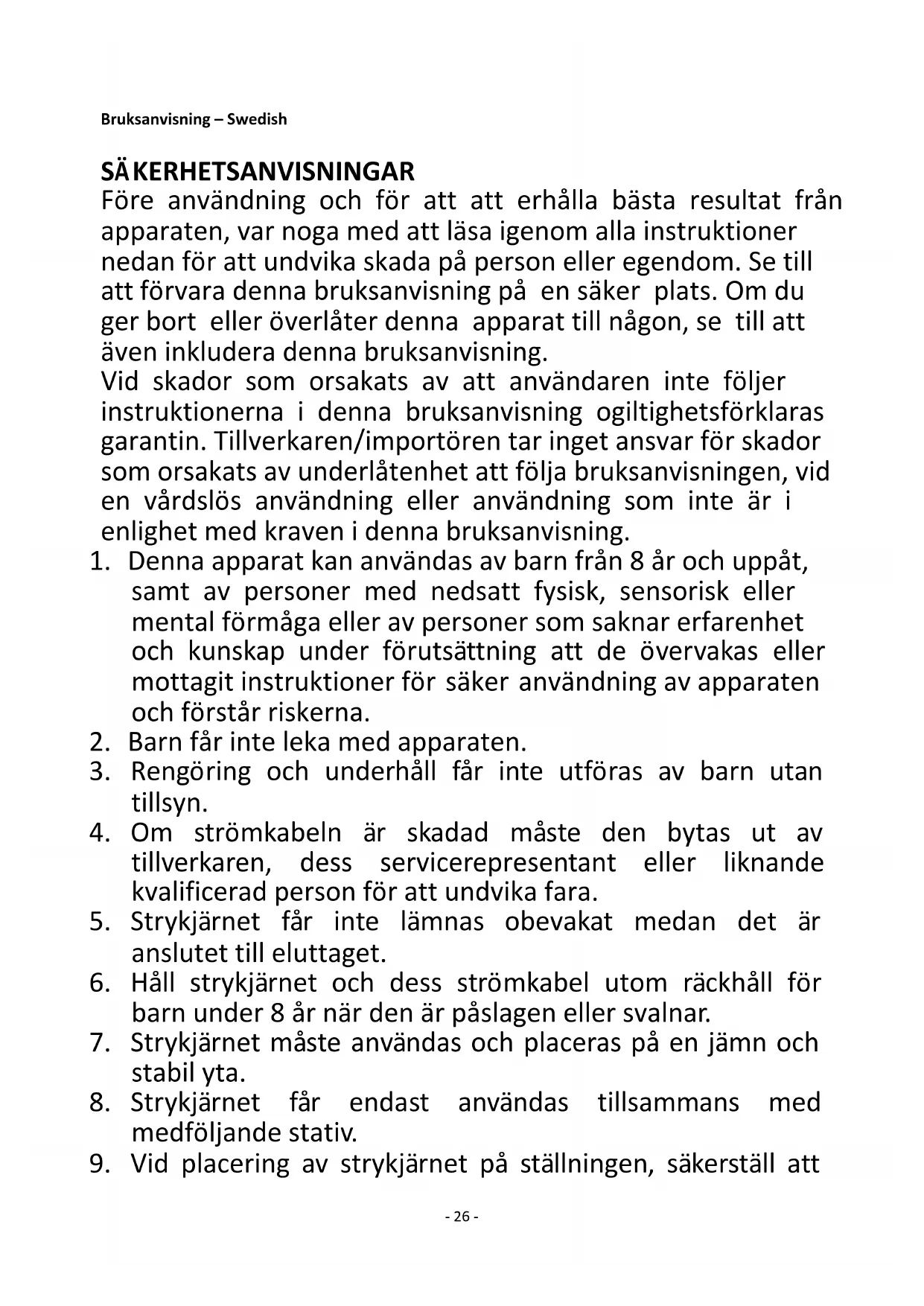 8. Strykjärnet får endast användas tillsammans med