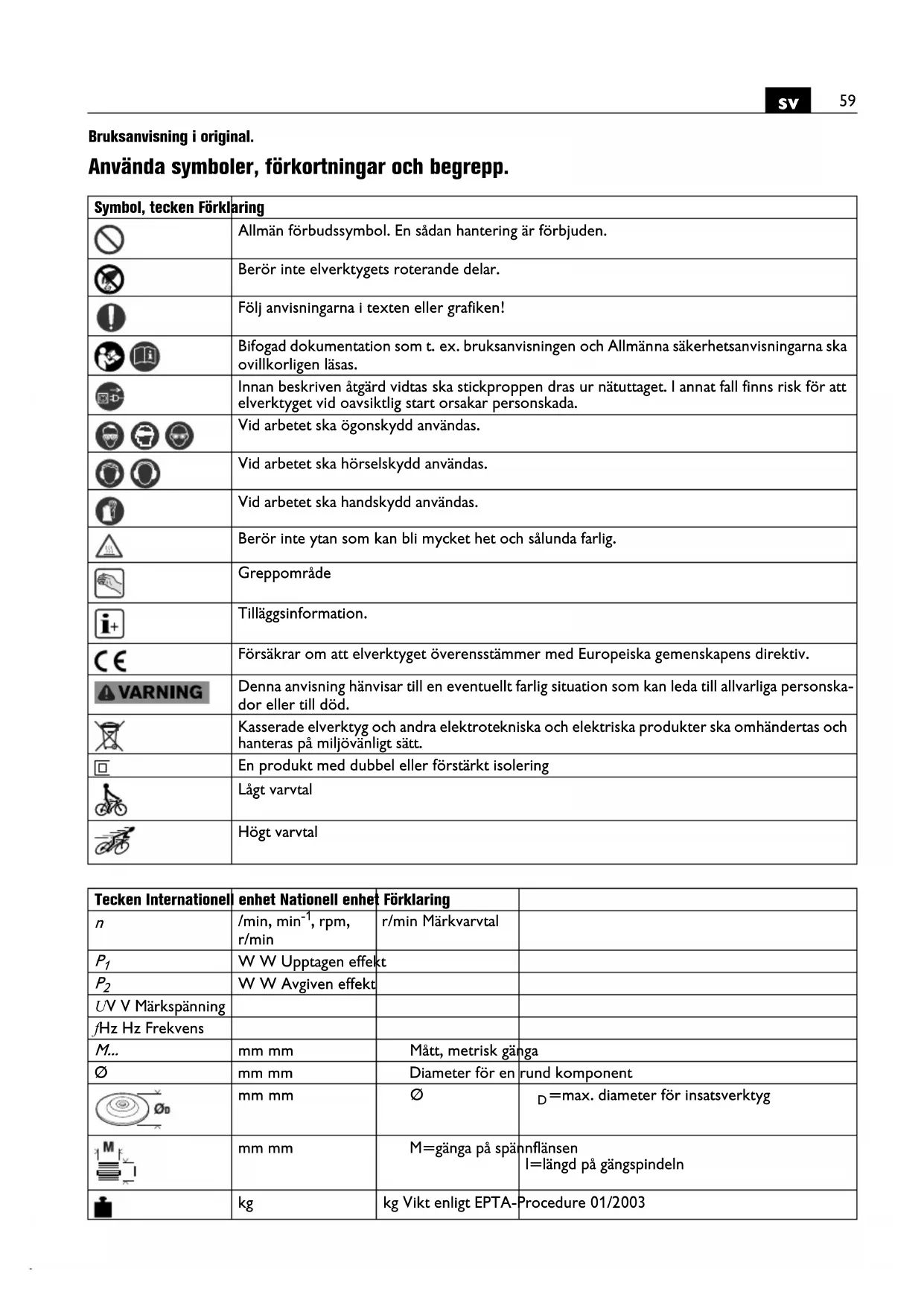 | kg | kg Vikt enligt EPTA-Procedure 01/2003 | ||