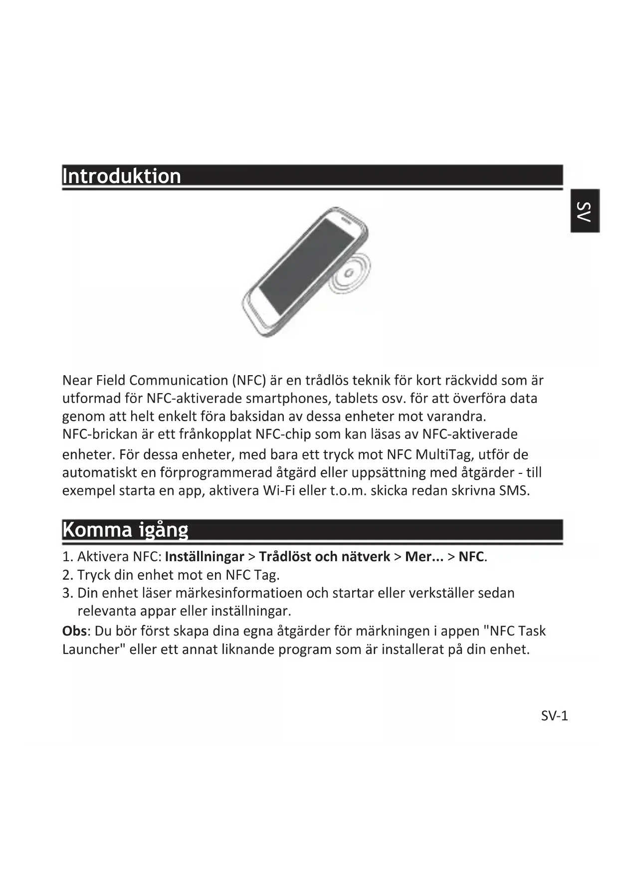 relevanta appar eller inställningar. Obs: Du bör först skapa dina egna åtgärder för märkningen i appen "NFC Task Launcher" eller ett annat liknande program som är installerat på din enhet.SV-2