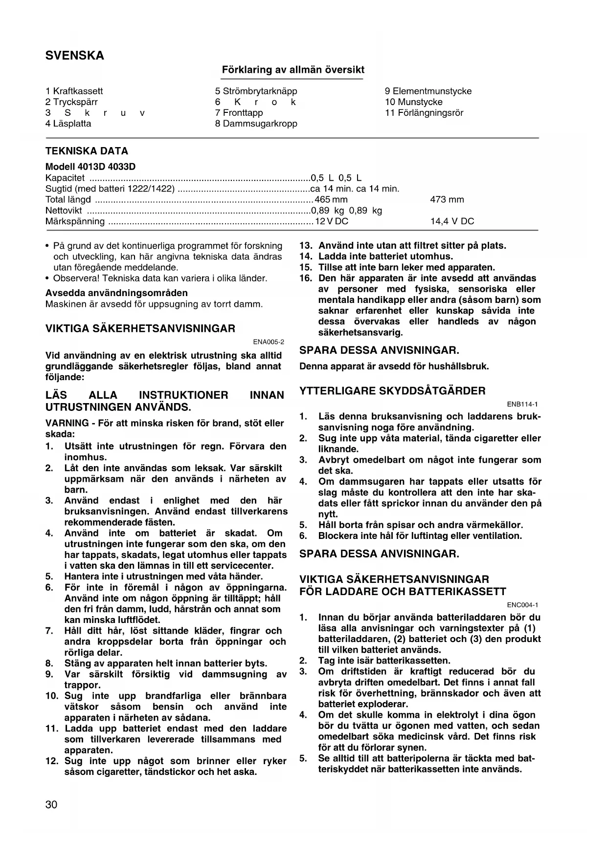 - Innan du börjar använda batteriladdaren bör du lasa alla anvisningar och varningstexter på (1) batteriladdaren, (2) batteriet och (3) den produit till vilken batteriet används.