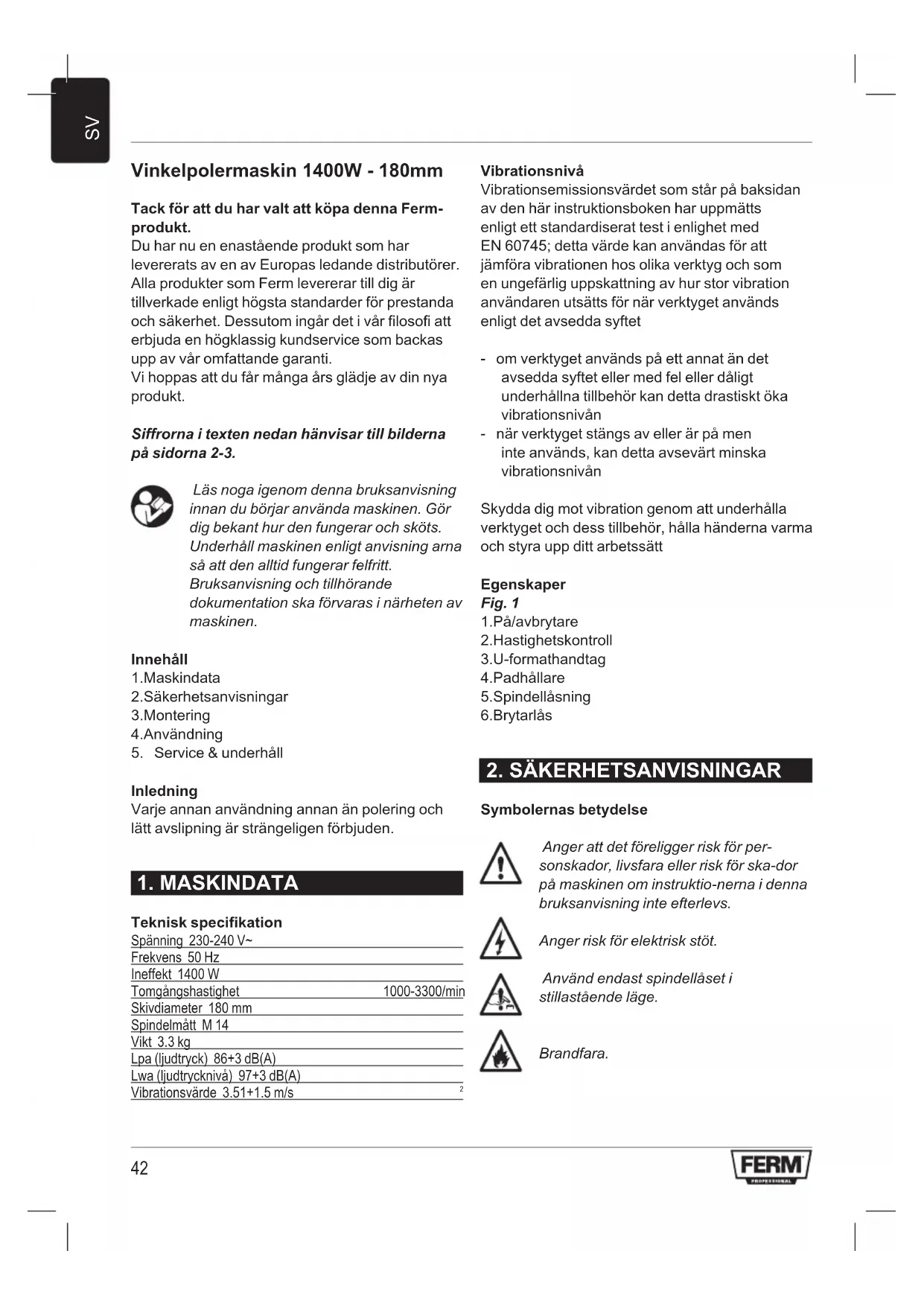 BRUKSANVISNING AGM1084P Ferm