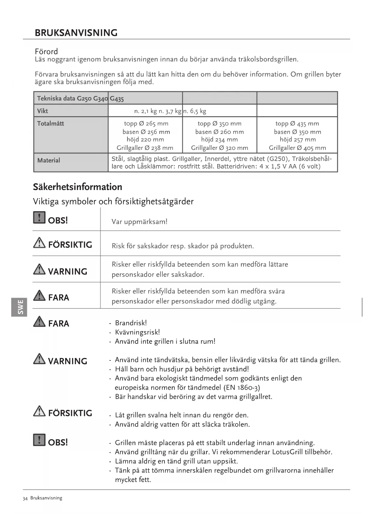 BRUKSANVISNING G435 LOTUSGRILL