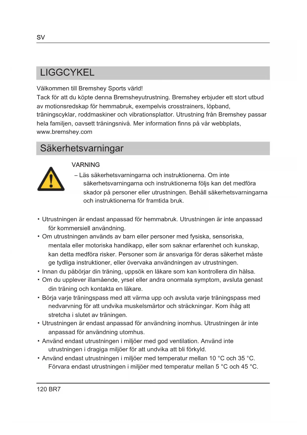 BR7 - Träningscykel Bremshey - Gratis bruksanvisning och manual
