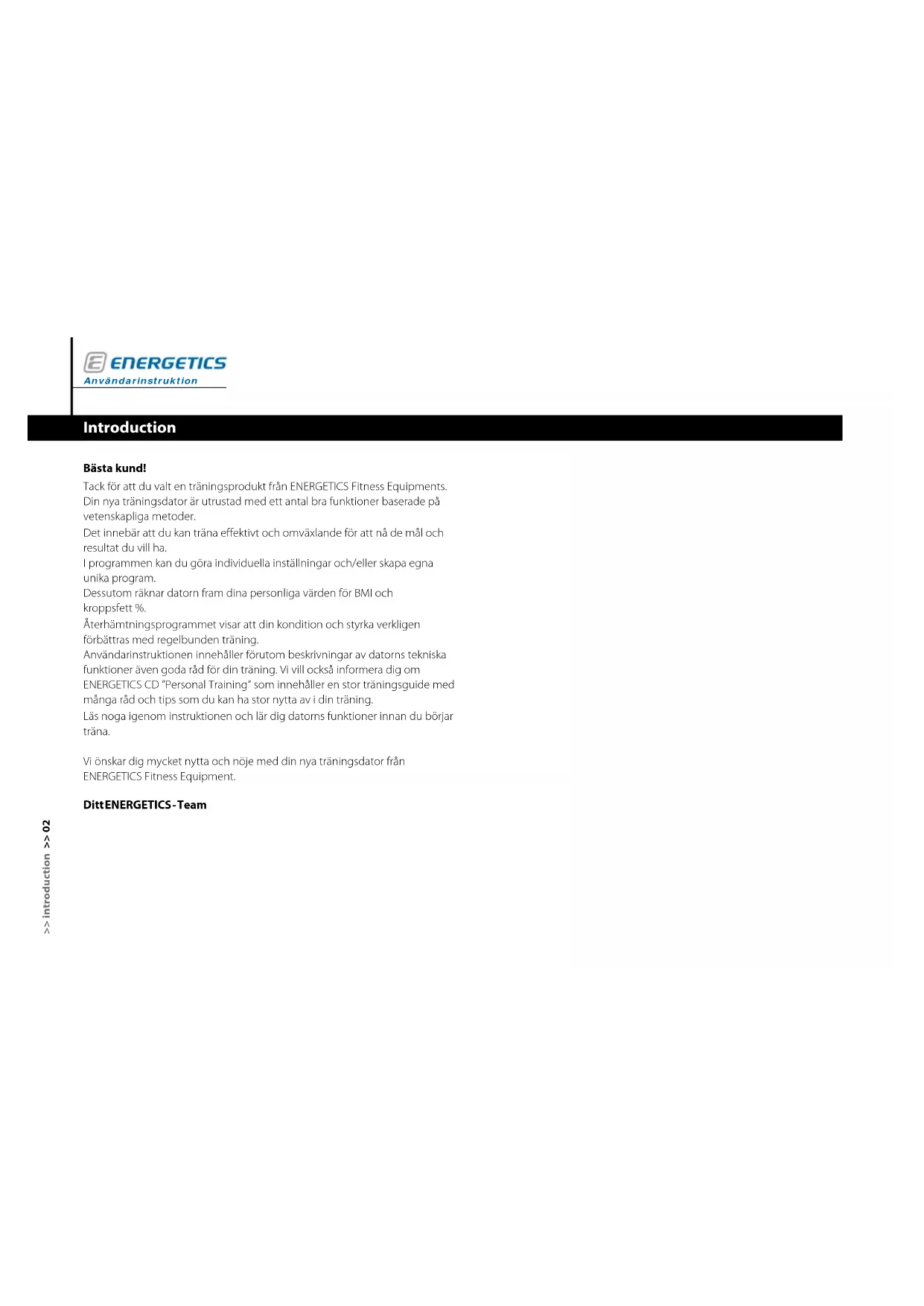 BRUKSANVISNING Exercise Monitor E203 Energetics