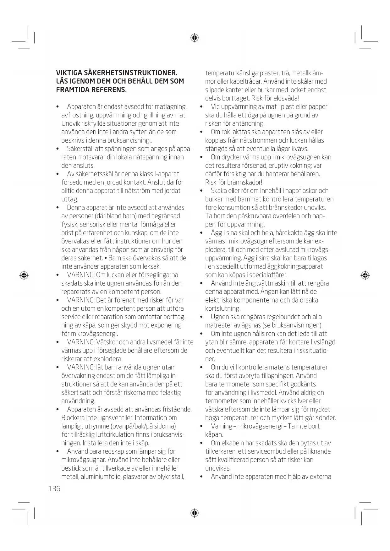- Apparatenärendastavseddförmatlagning, avfrostning,uppvärmningochgrillningavmat. Undvikriskfylldasituationergenomattinte användadeninteiandrasyftenändesom beskrivs i denna bruksanvisning..