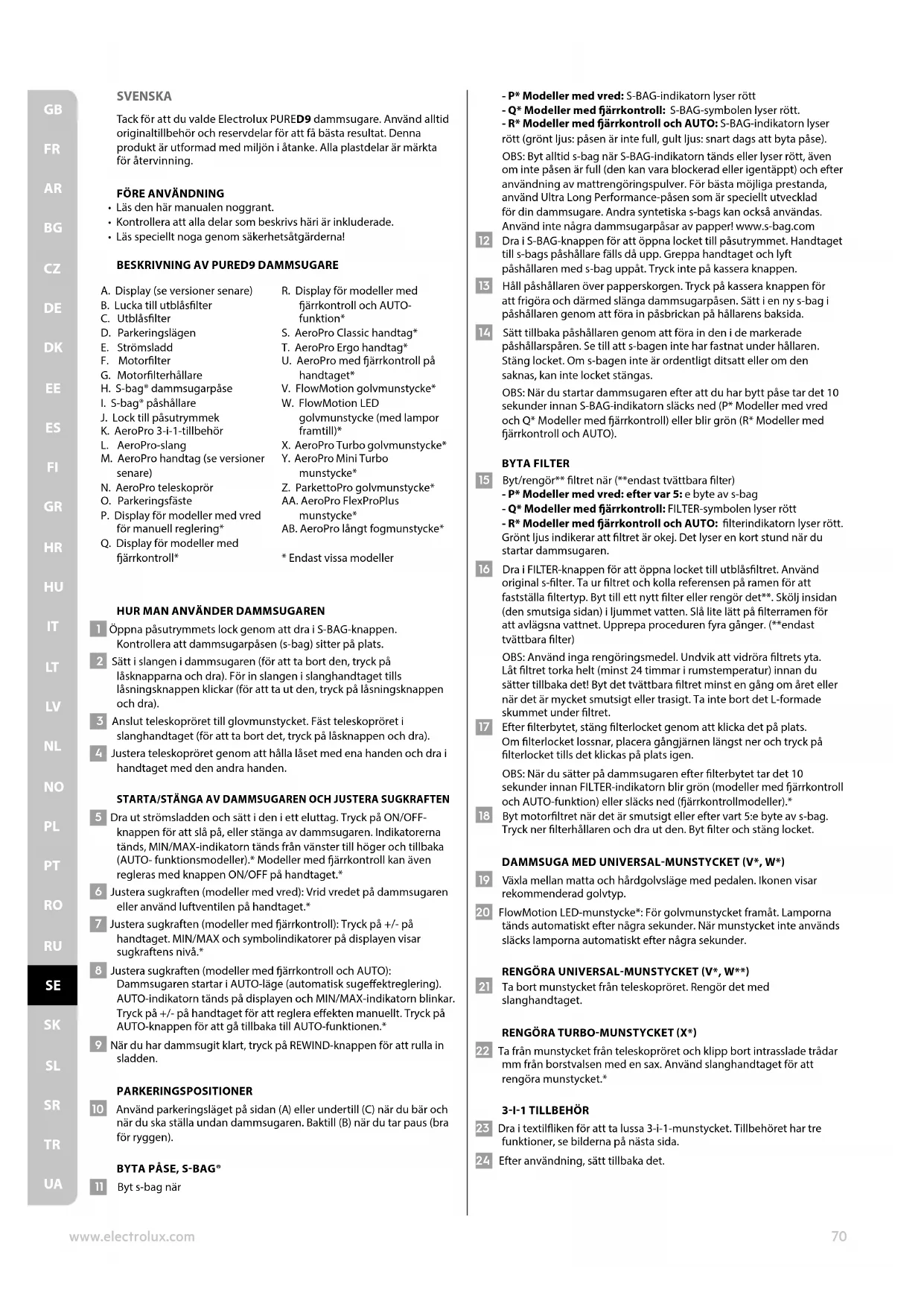 Tack for att du valde Electrolux PURED9 dammsugare. Anvand alltid originaltillbehör och reservdilar for att fà basta resultat. Denna produit ar utformad med miljön i atanke. Alla plastdilar ar markta for Återvinning.