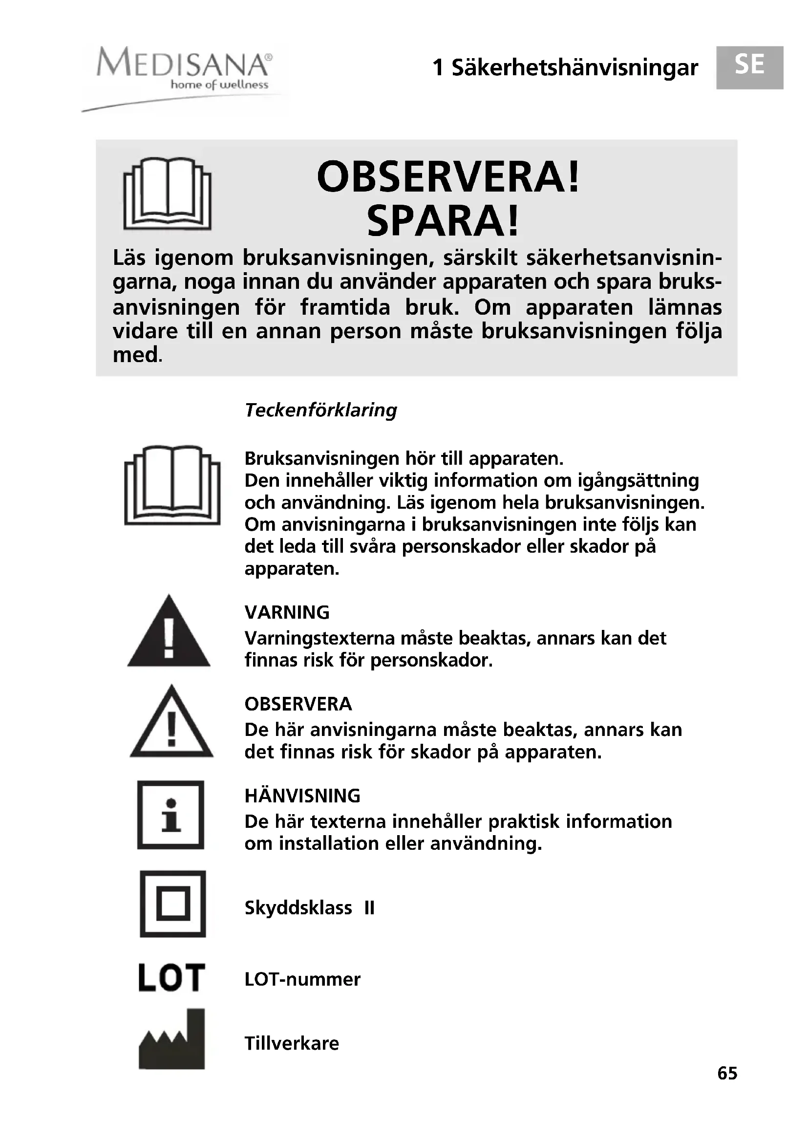 For att användingen ske ge önskat resultat, och För att du skä kunna använda din MEDISANA fotvärmare FWS sä länge som möjlg, reckommender vi att du laser nedanstående anvisningar om användning och skötsel noga.