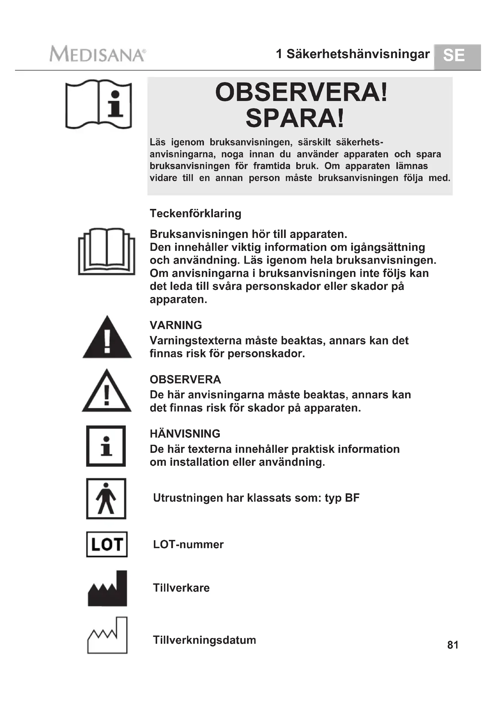1 Sakerhetshanvisiningar. 81