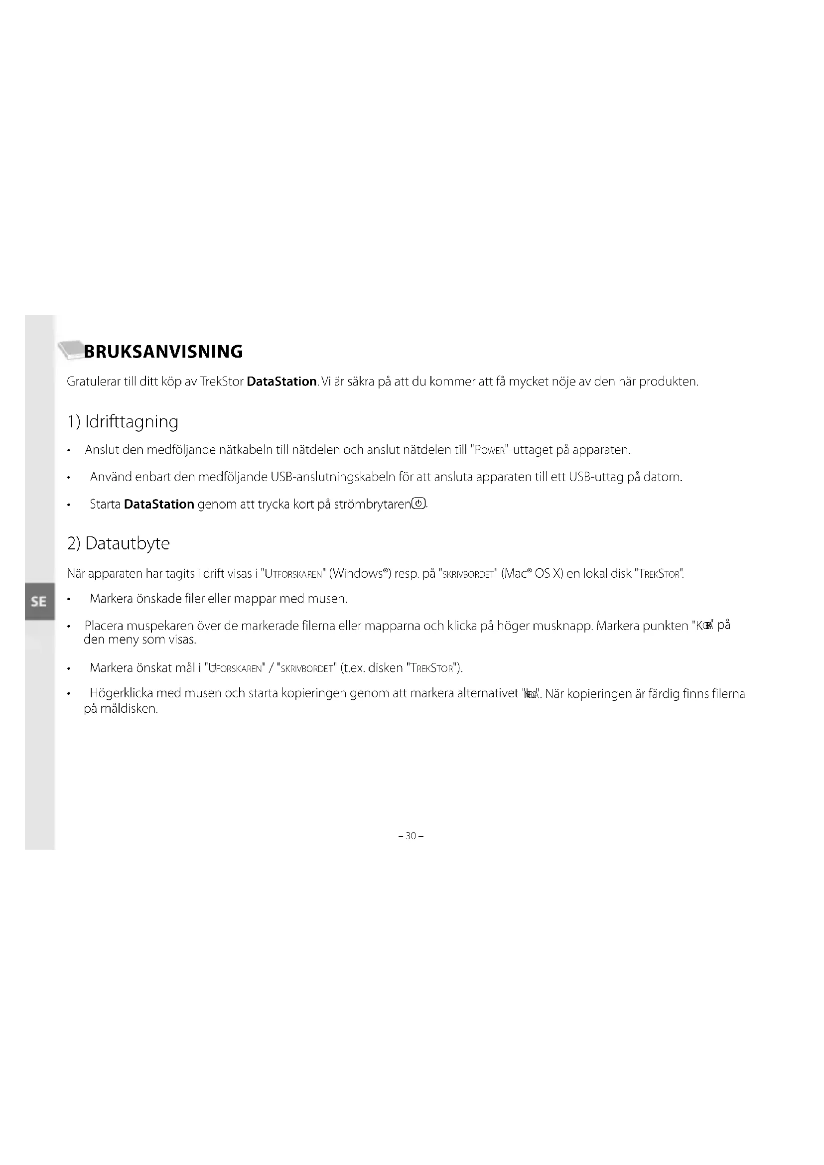 – 31 – BRUKSANVISNING Gratulerar till ditt köp av TrekStor DataStation. Vi är säkra på att du kommer att få mycket nöje av den här produkten.