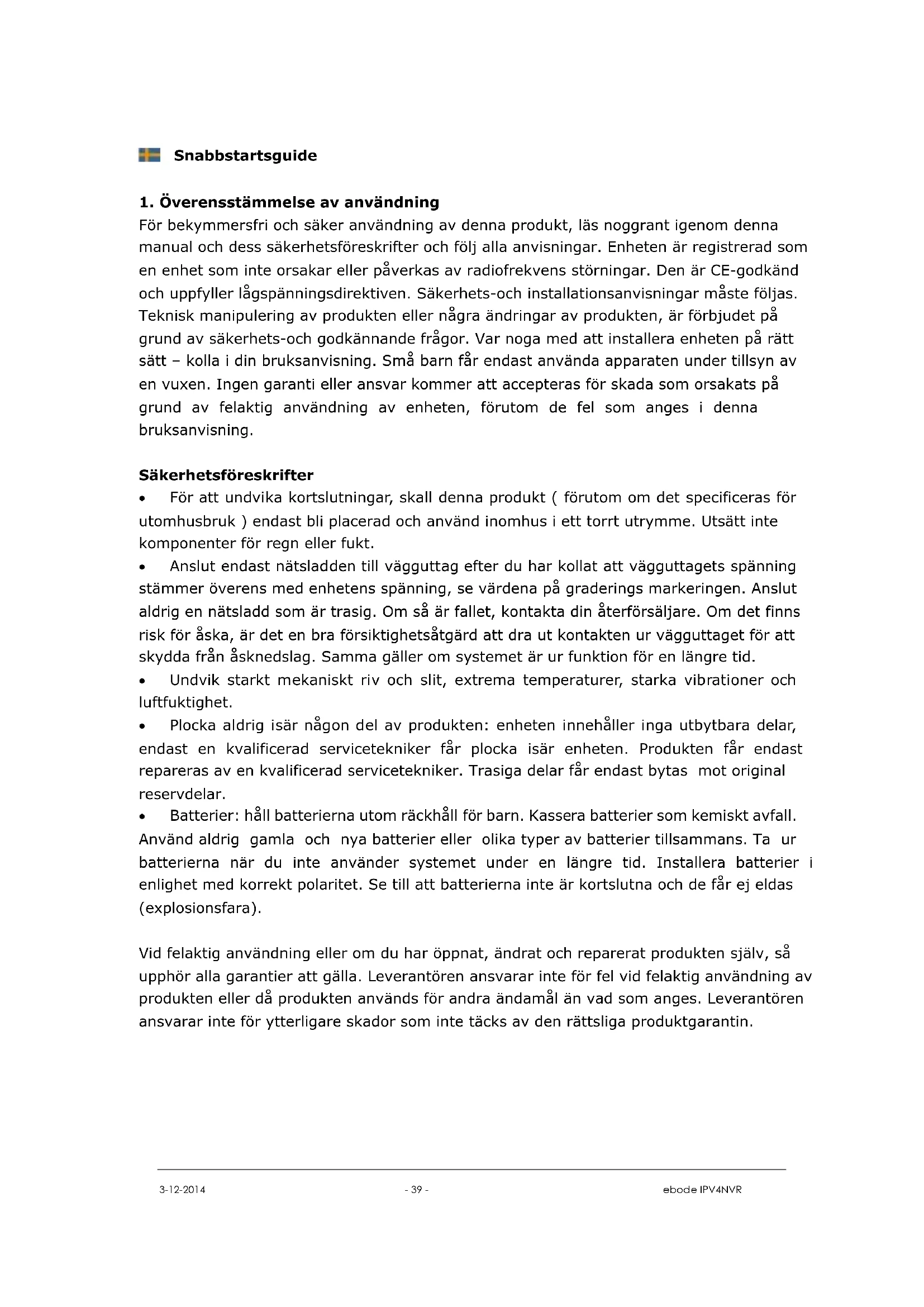 Hitta enhetens manual gratis IPV4NVR EBODE i PDF-format.