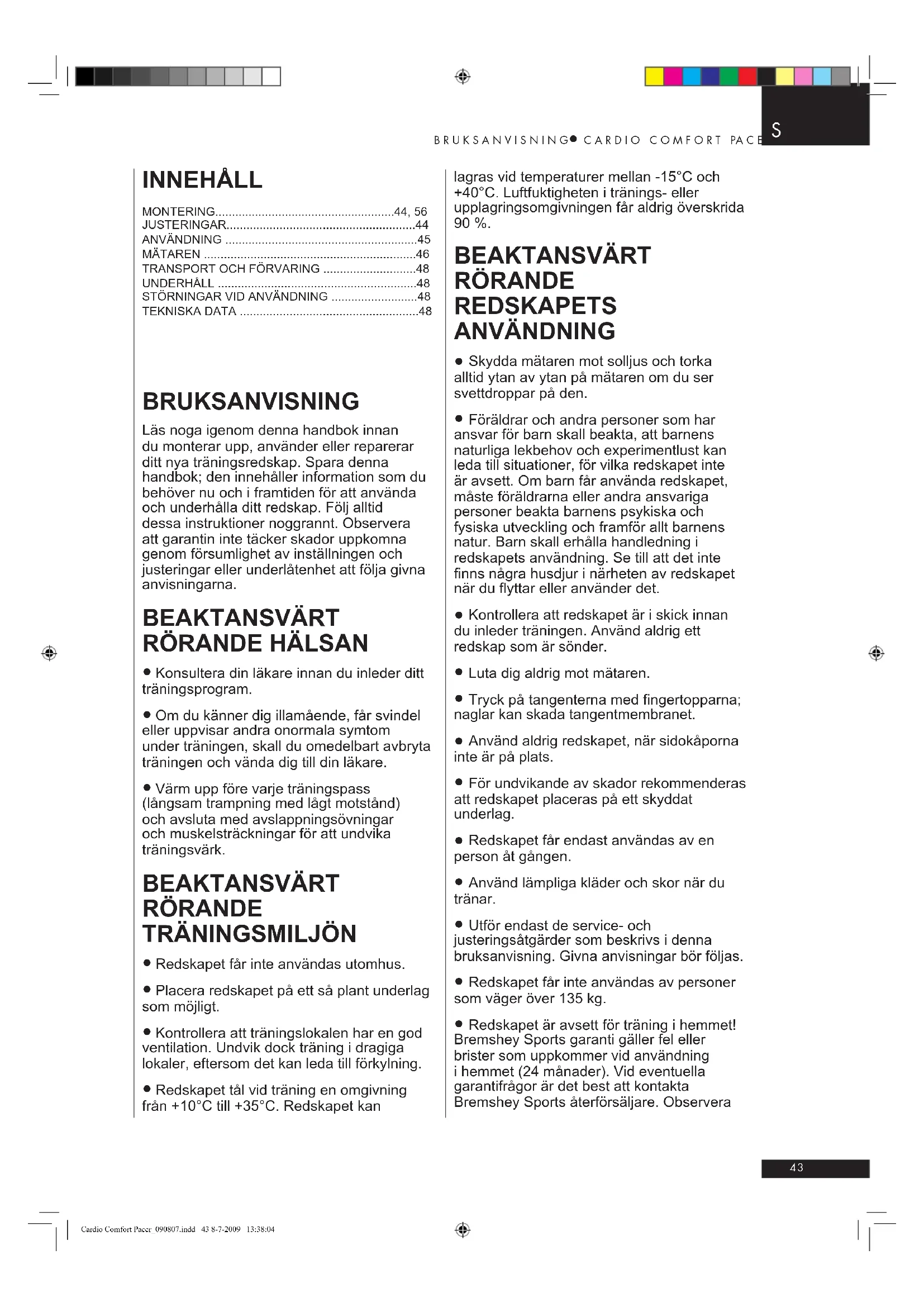BRUKSANVISNING Cardio Comfort Pacer Bremshey