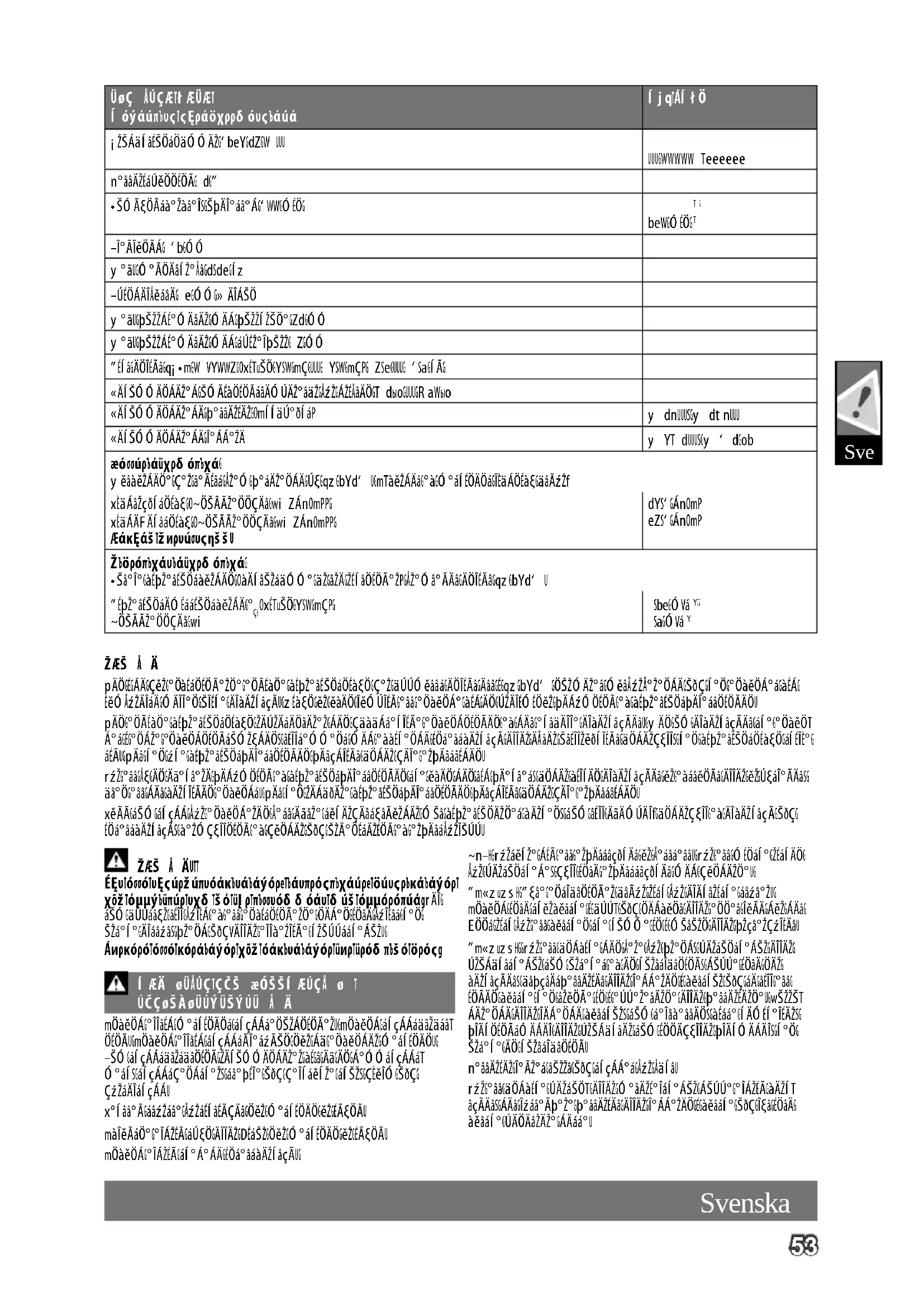 Tekniska data, Säkerhetsutrustning, Använd maskinen Enligt anvisningarna, CEFörsäkran, Batterier, Skötsel, Symboler Läs igenom och spara! Svenska