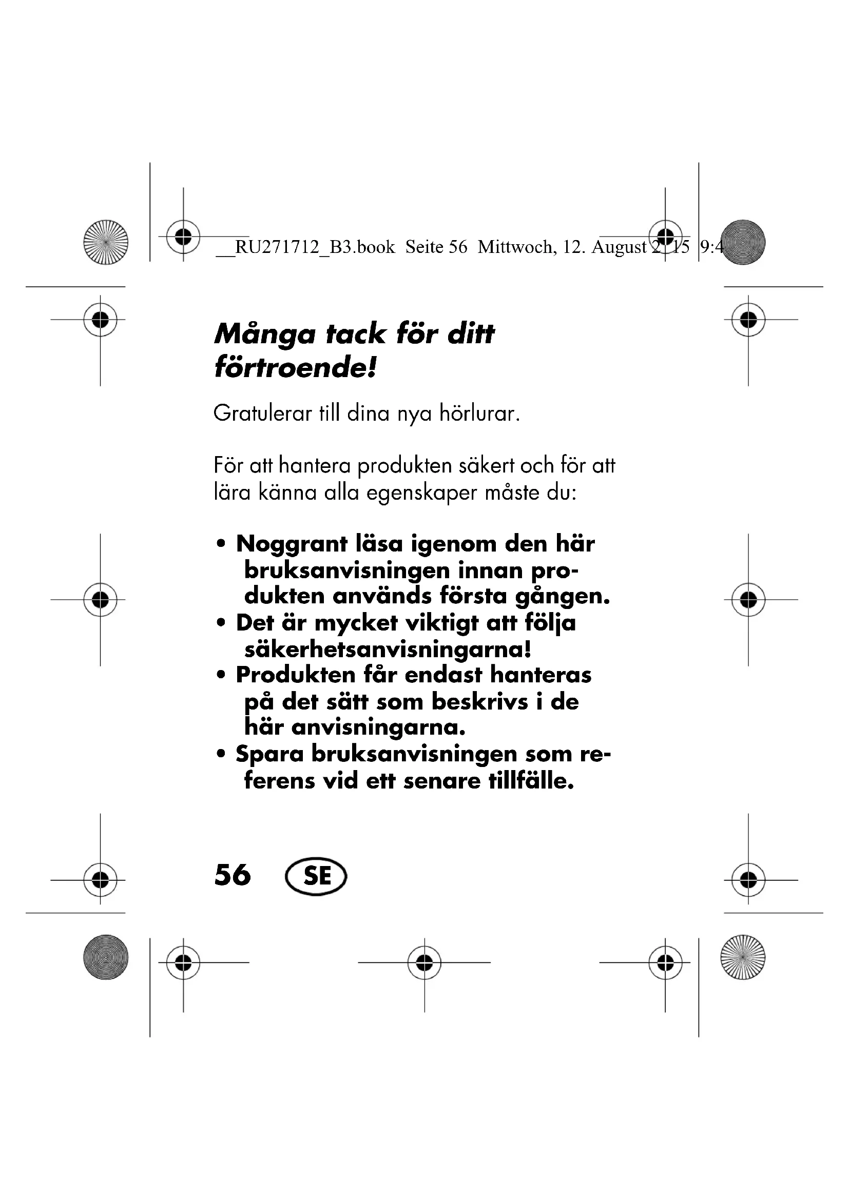 - Om du skulle överlåta produk- ten till någon annan, se till att även överlämna den här bruks- anvisningen. Bruksanvisningen är en del av produkten. Vi hoppas att du får mycket glädje av dina nya hörlurar!