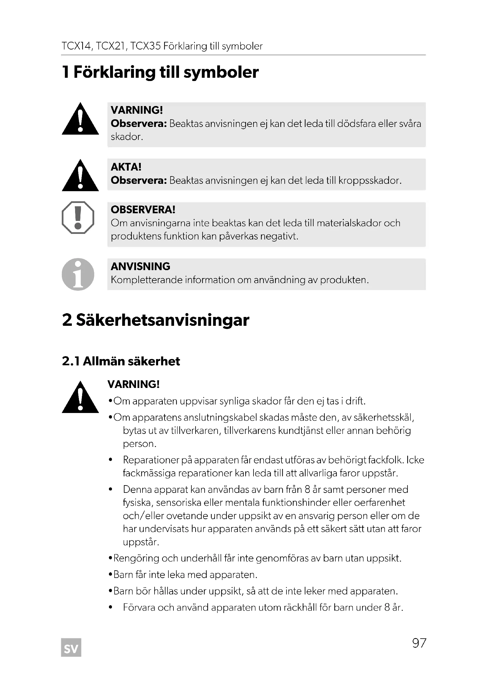 2 Säkerhetsanvisningar 97