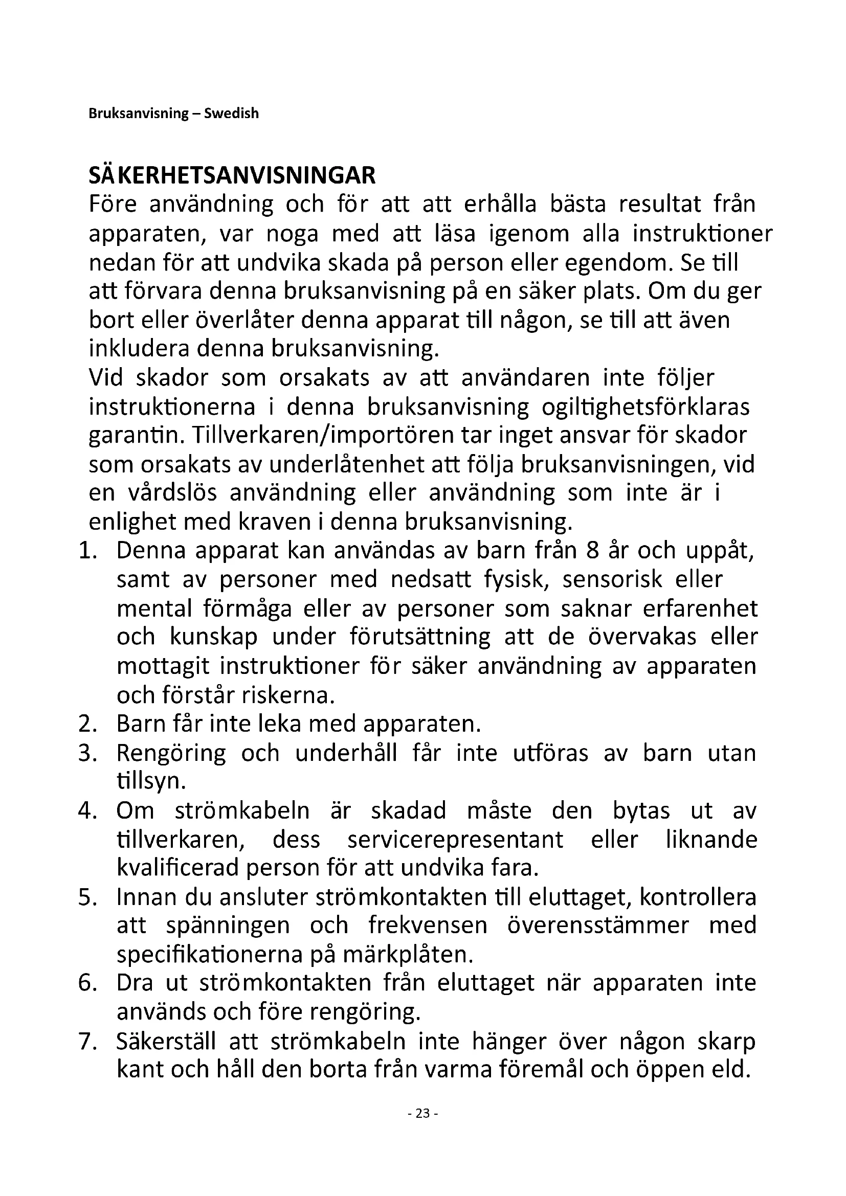 1. Denna apparat kan användas av barn från 8 år och uppåt,