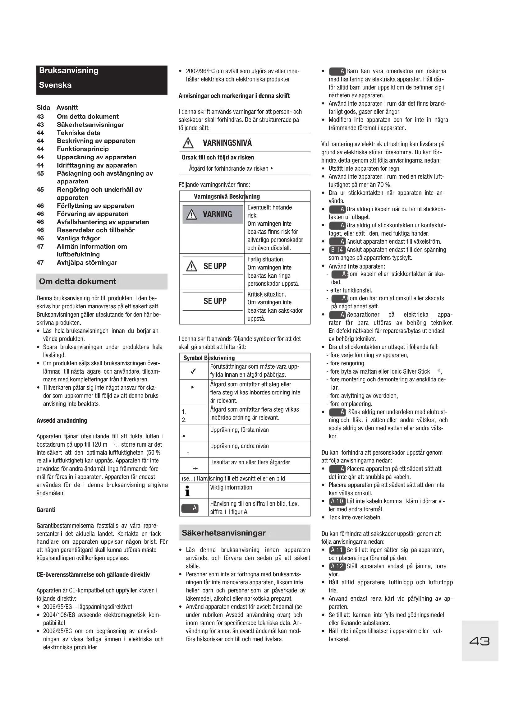 43 Sakerhetsanvisiningar