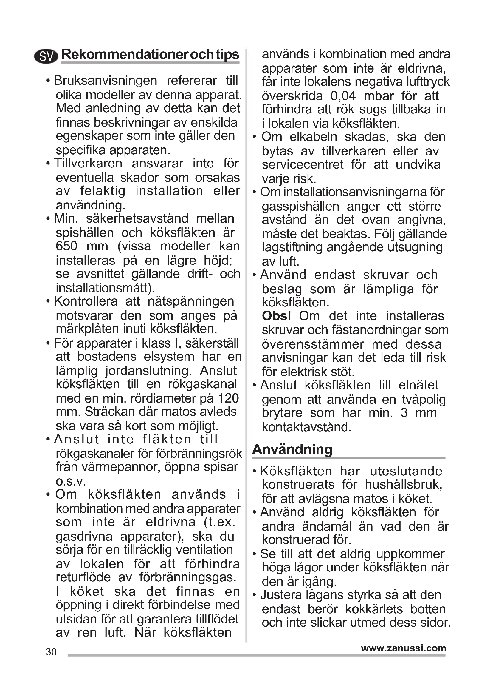 - Köksfläkten har uteslutande konstruerats för hushållsbruk, för att avlägsna matos i köket.