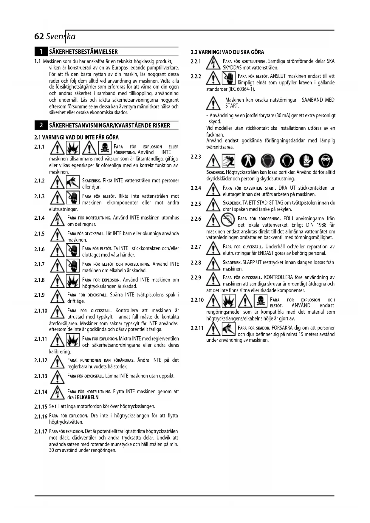 skaderisk. Rikta INTE vattenstrålen mot personer eller djur.