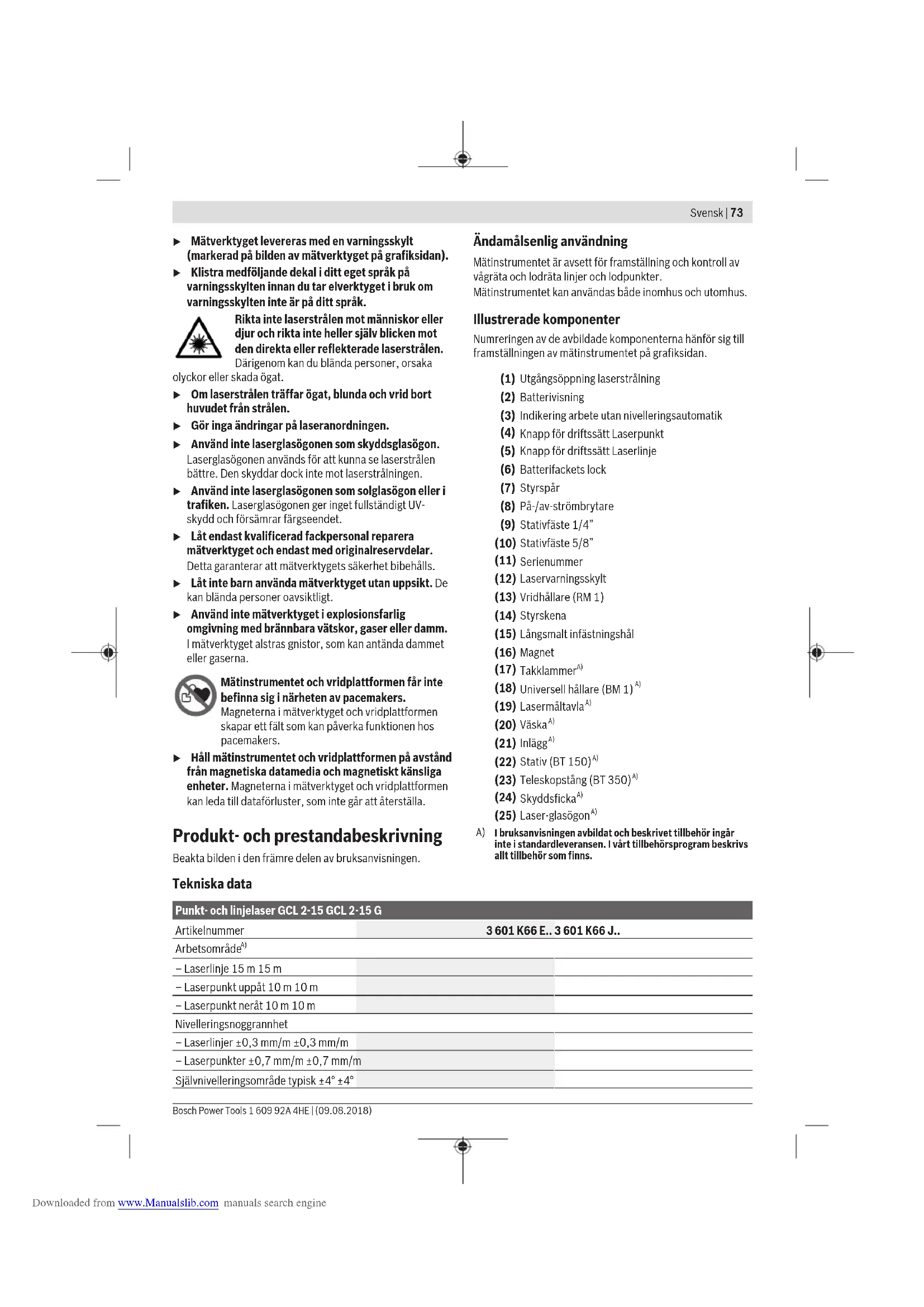 I bruksanvisningen avbildat och beskrivet tillbehör ingårinte i standardleveransen. I vårt tillbehörsprogram beskrivsallt tillbehör som finns. Tekniska data Punkt- och linjelaser GCL 2-15 GCL 2-15 G Artikelnummer 3 601 K66 E.. 3 601 K66 J.. Arbetsområde