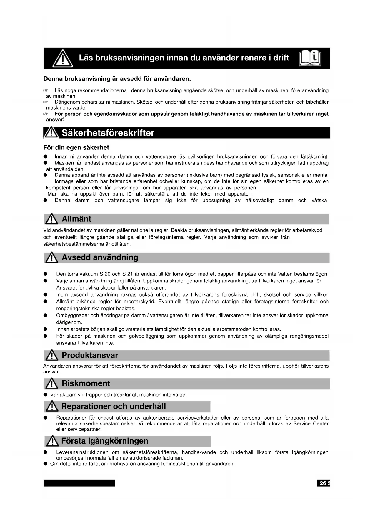 S 20 - Dammsugare Cleanfix - Gratis bruksanvisning och manual