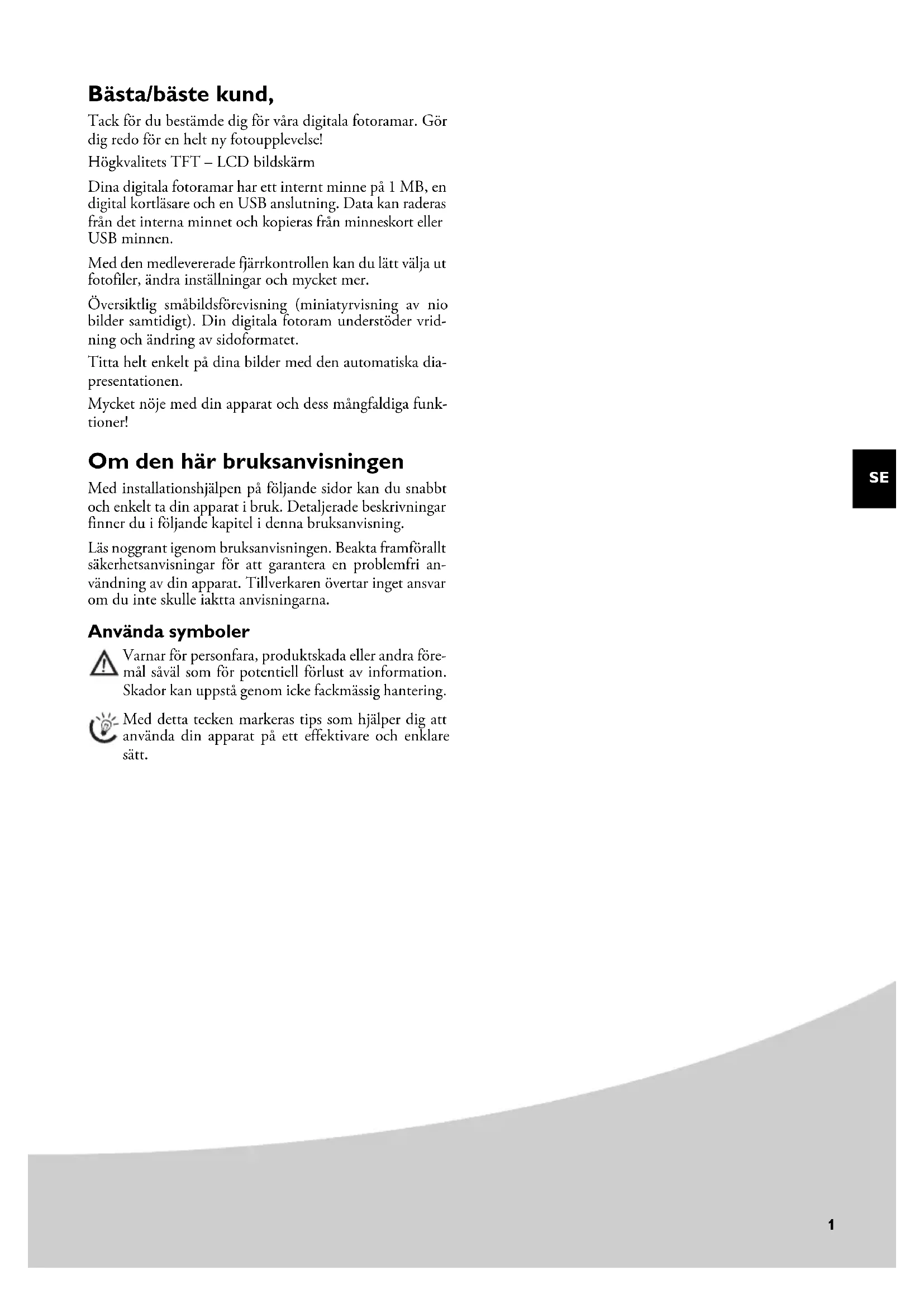 Varnar for personara, produktskada aller andra foremal saval som for potentiell frolust av information. Skador kan uppsta genom icke fackmüssig hantering.
