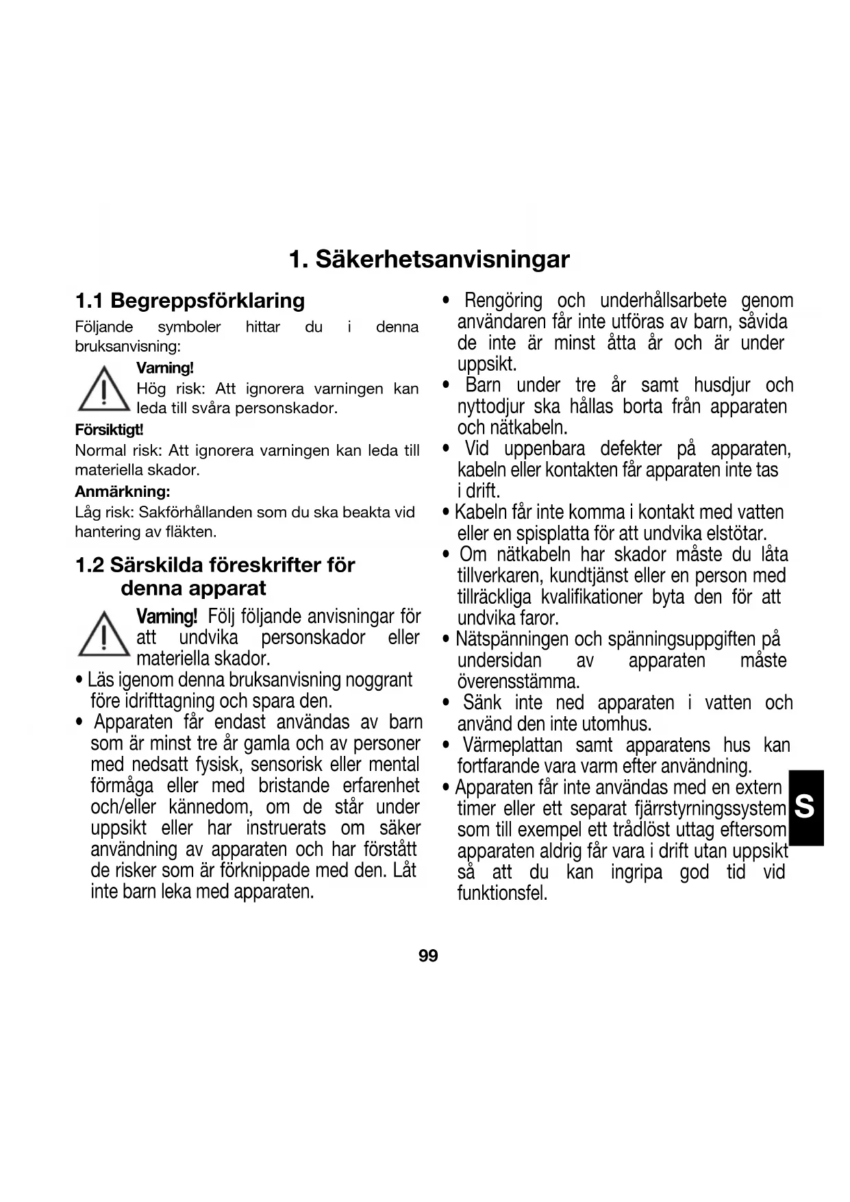 - Barn under tre år samt husdjur och nyttodjur ska hållas borta från apparaten och nätkabeln.