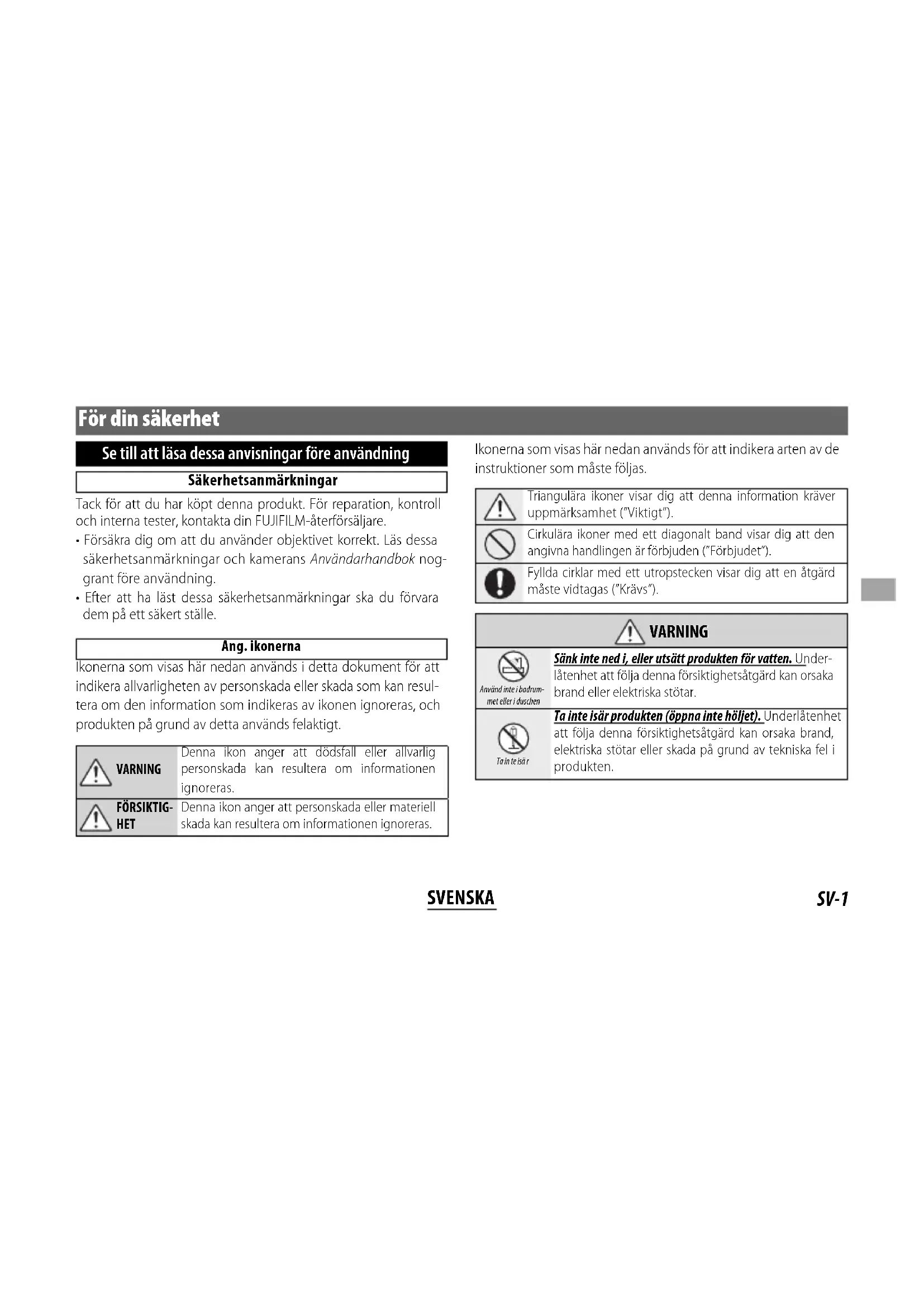 Tack för att du har köpt denna produkt. För reparation, kontroll och interna tester, kontakta din FUJIFILM-återförsäljare.