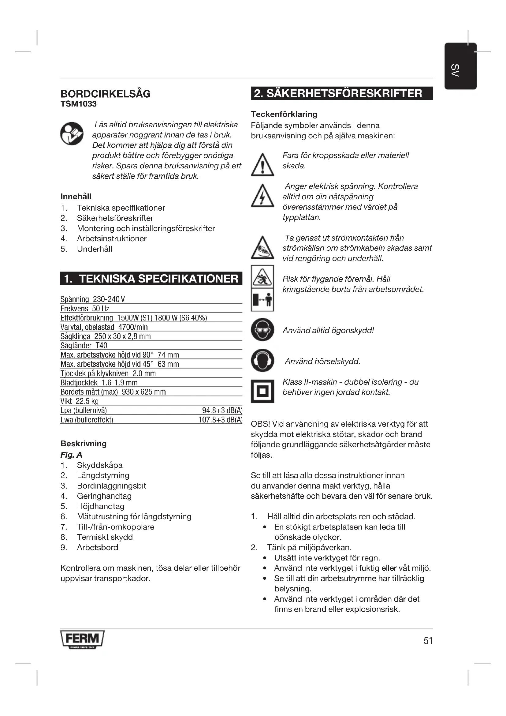 TSM1033 - Såg Ferm - Gratis bruksanvisning och manual