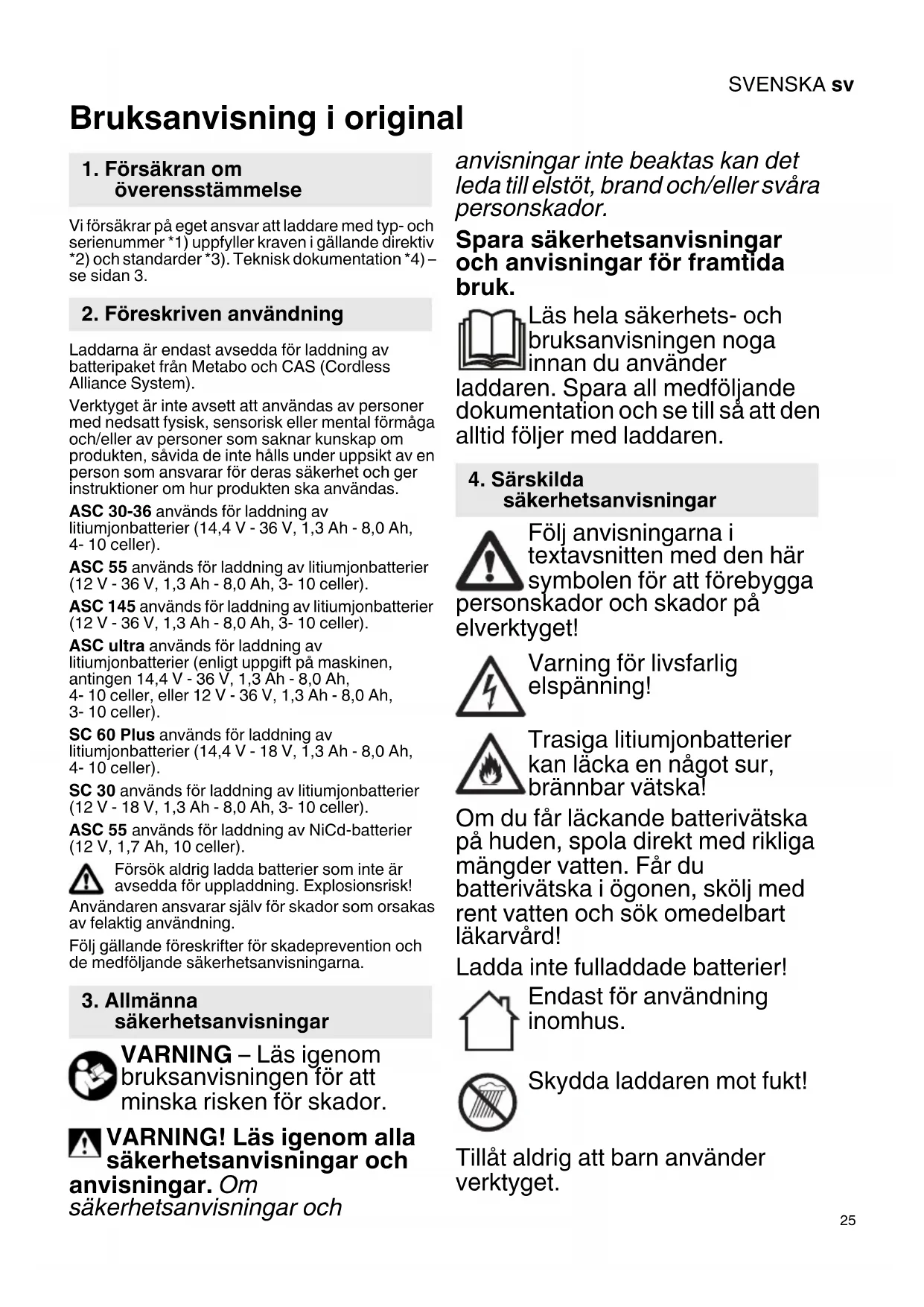 ASC 3036 - Batteriladdare METABO - Gratis bruksanvisning och manual