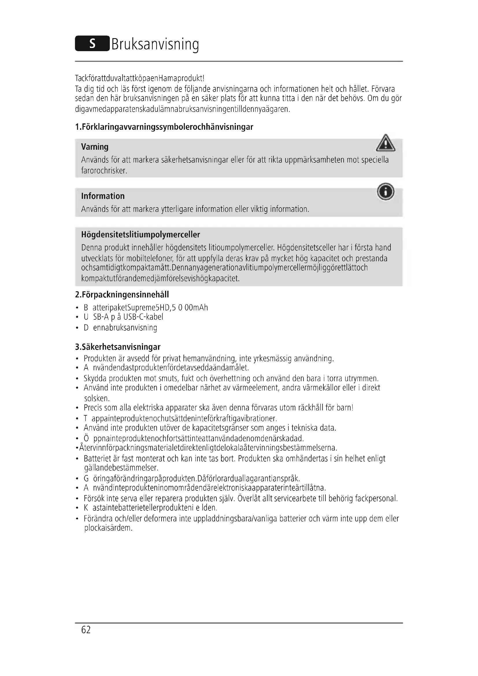 Varning Används för att markerasäkerhetsanvisningar eller för att rikta uppmärksamheten mot speciella faror och risker. Information Används för att markeraytterligareinformation eller viktig information. Högdensitets litiumpolymerceller Denna produkt innehåller högdensitets litioumpolymerceller.Högdensitetsceller har iförsta hand utvecklats för mobiltelefoner,för att uppfylla deras krav på mycket hög kapacitet och prestanda och samtidigt kompakta mått. Denna nya generation av litiumpolymerceller möjliggör ett lätt och kompakt utförande med jämförelsevis hög kapacitet.
