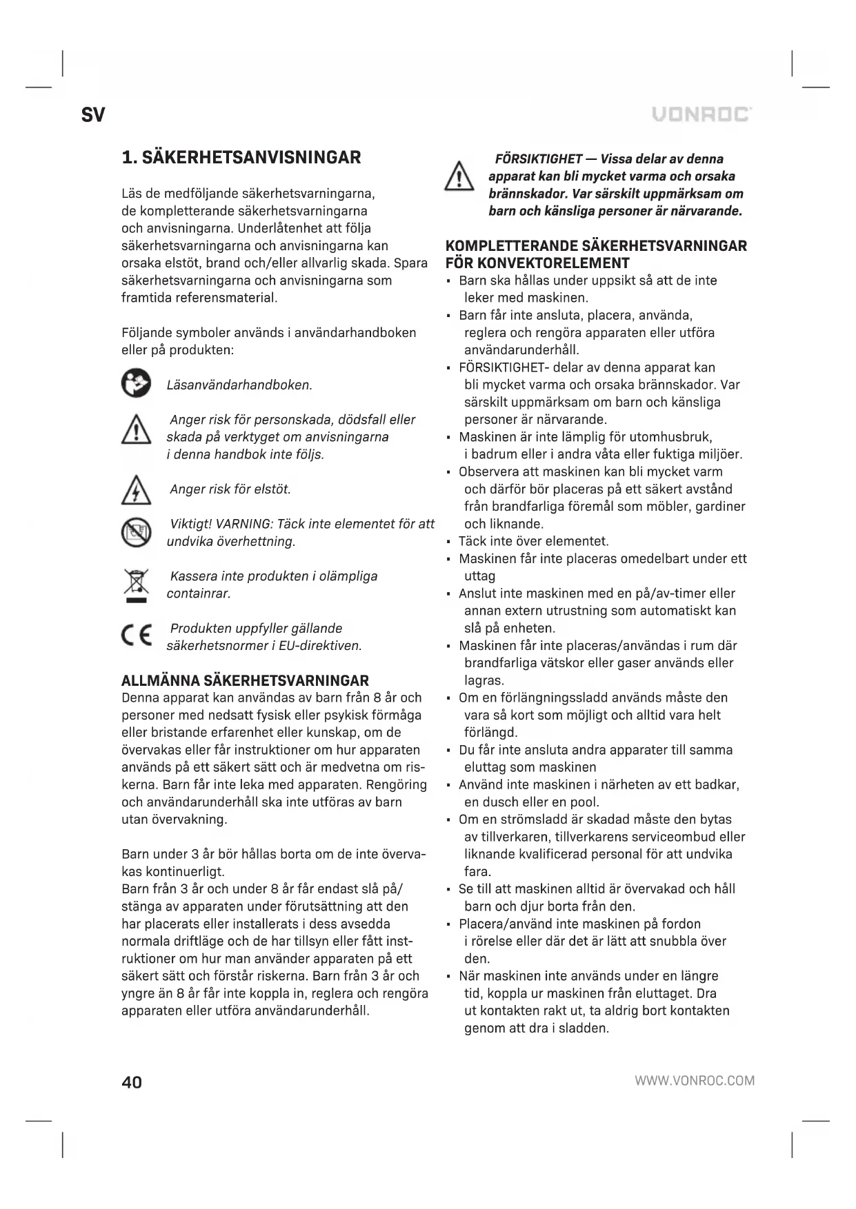 BRUKSANVISNING CH514AC Vonroc