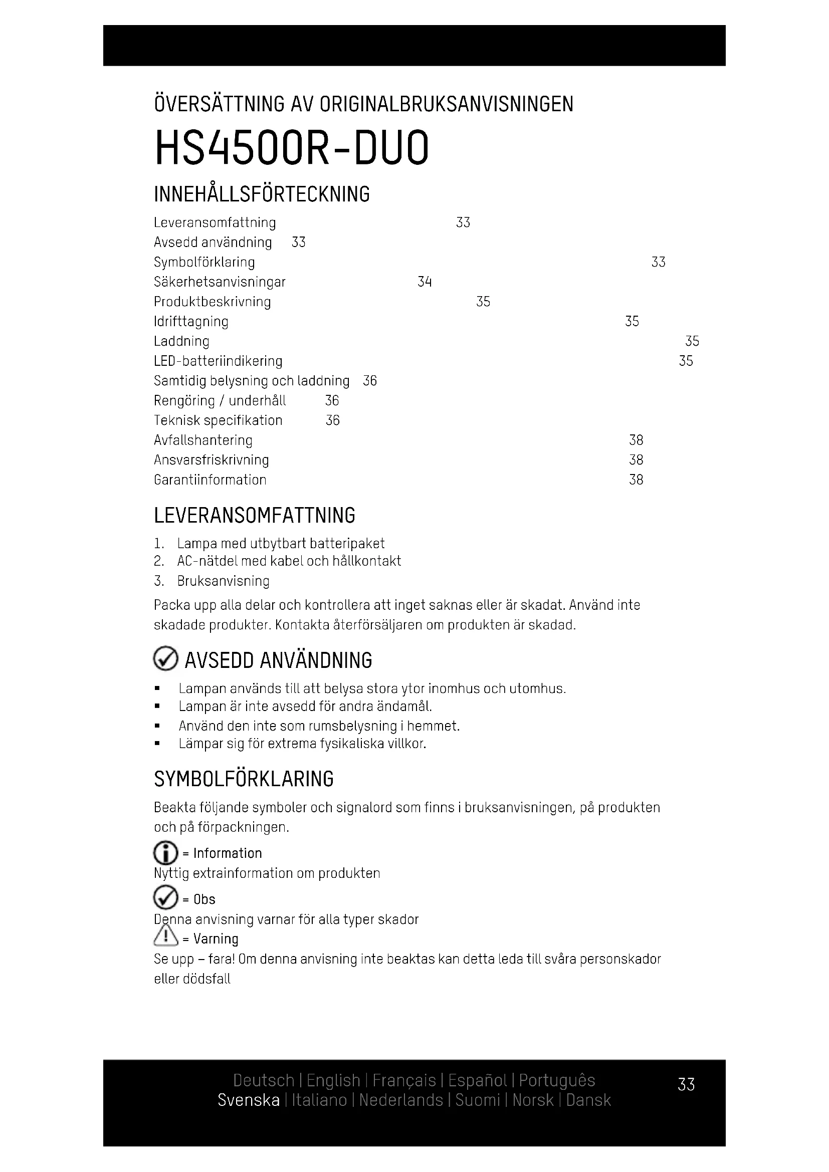 | Säkerhetsanvisningar | 34 | |||