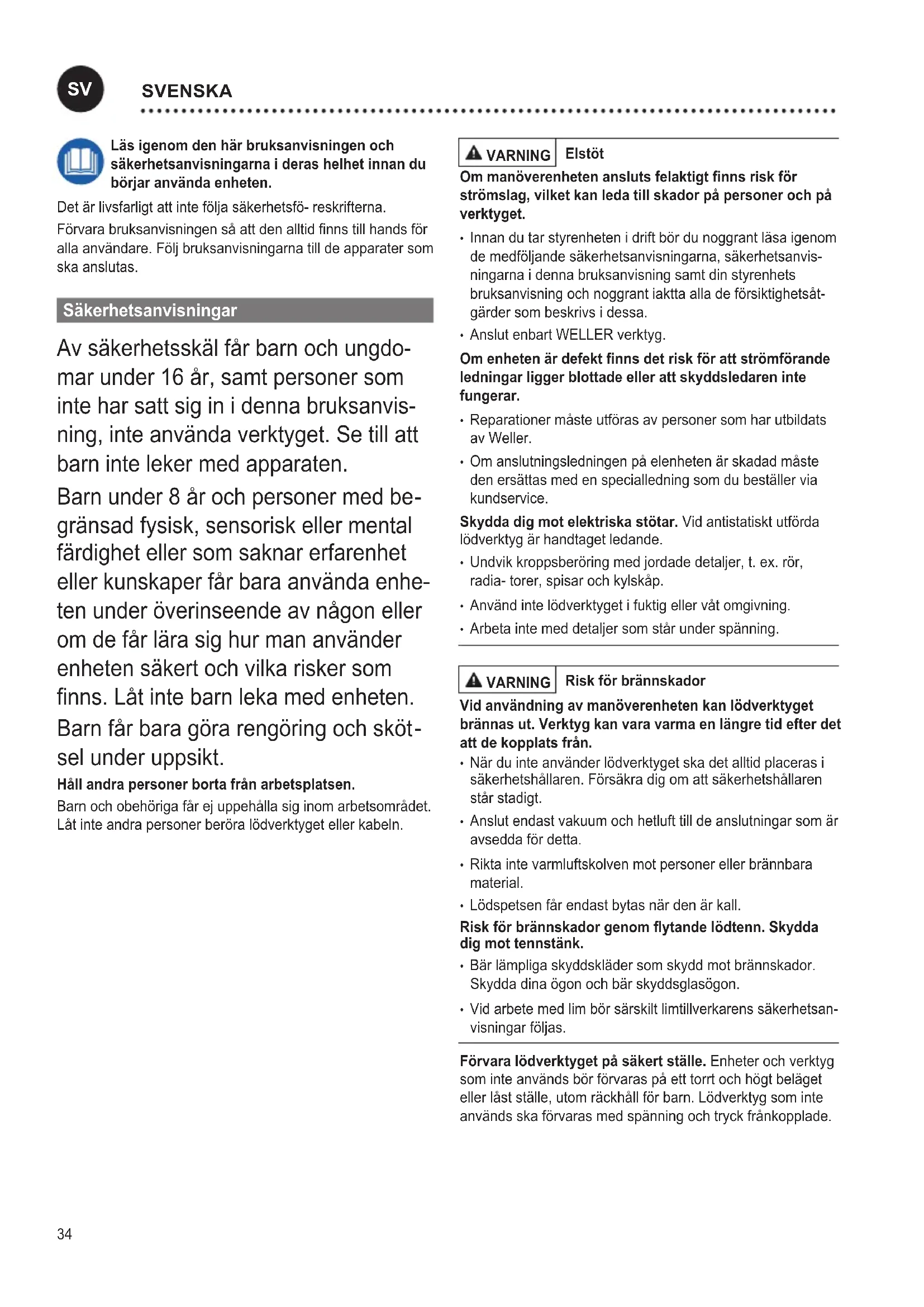 - Reparationer måste utföras av personer som har utbildats av Weller.