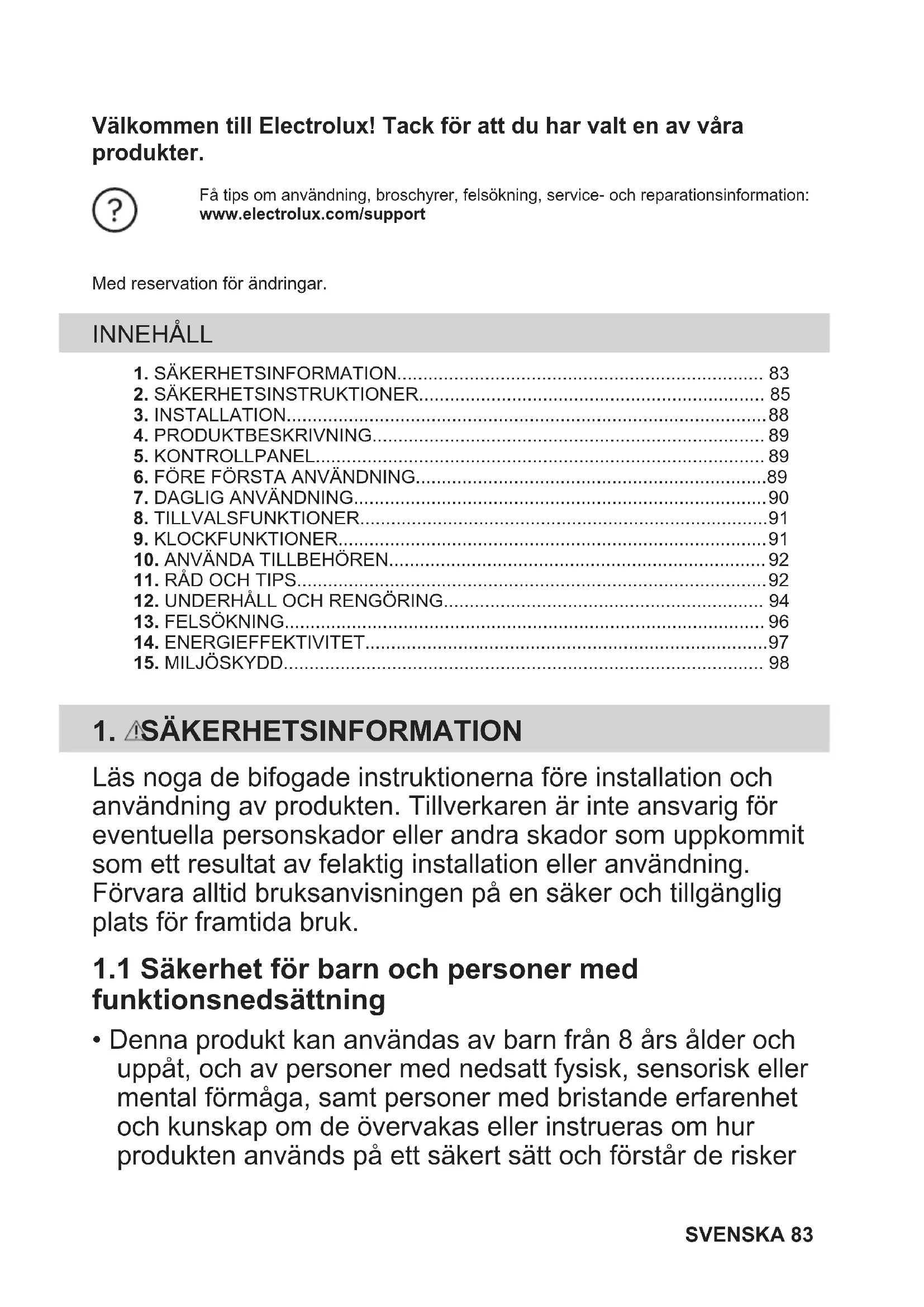 1.1 Säkerhet för barn och personer med