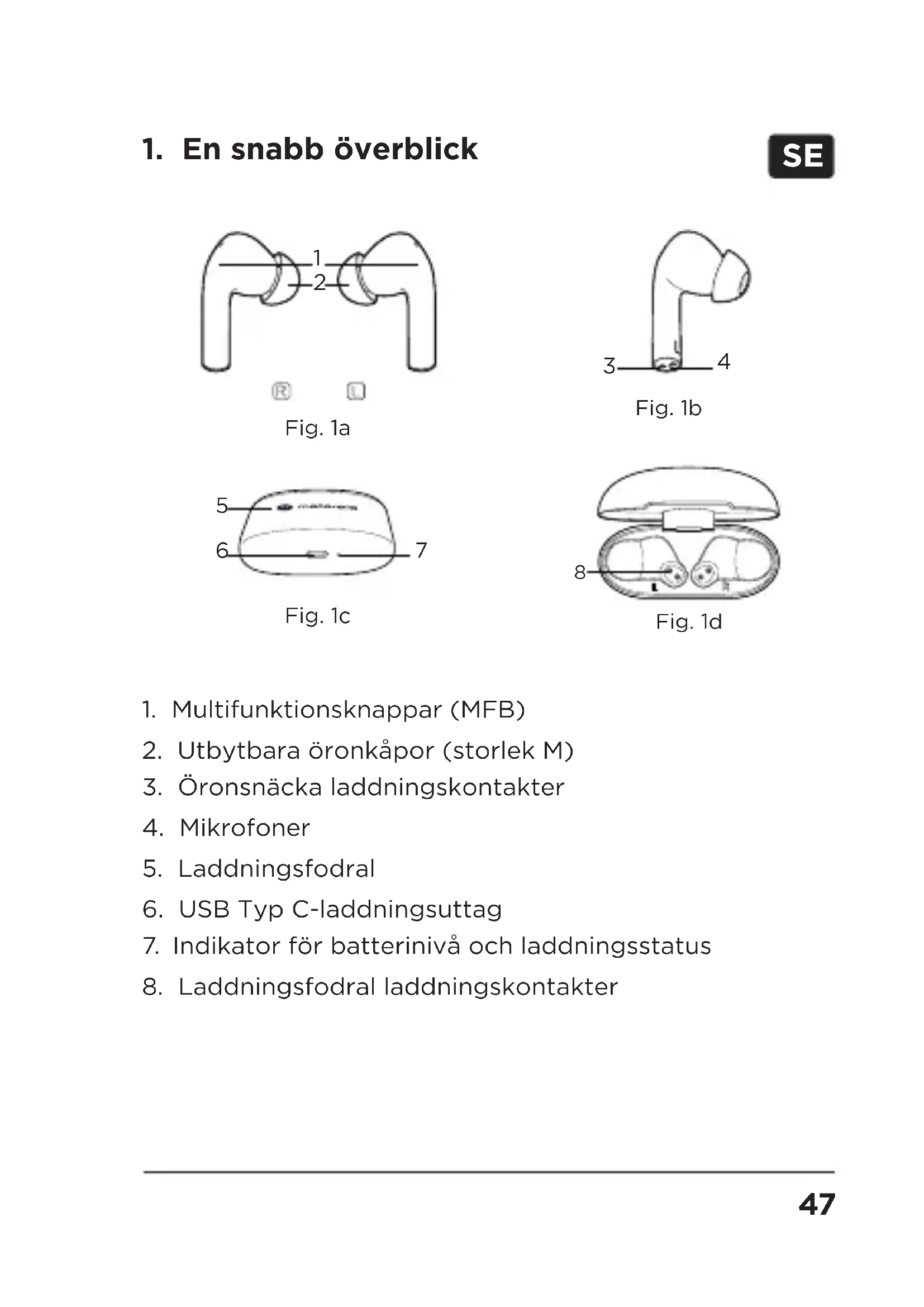 lock och ta ut hörsnäckorna från laddningsfodralet, hörsnäckorna slås på automatiskt. (Läs avsnitt 6)
