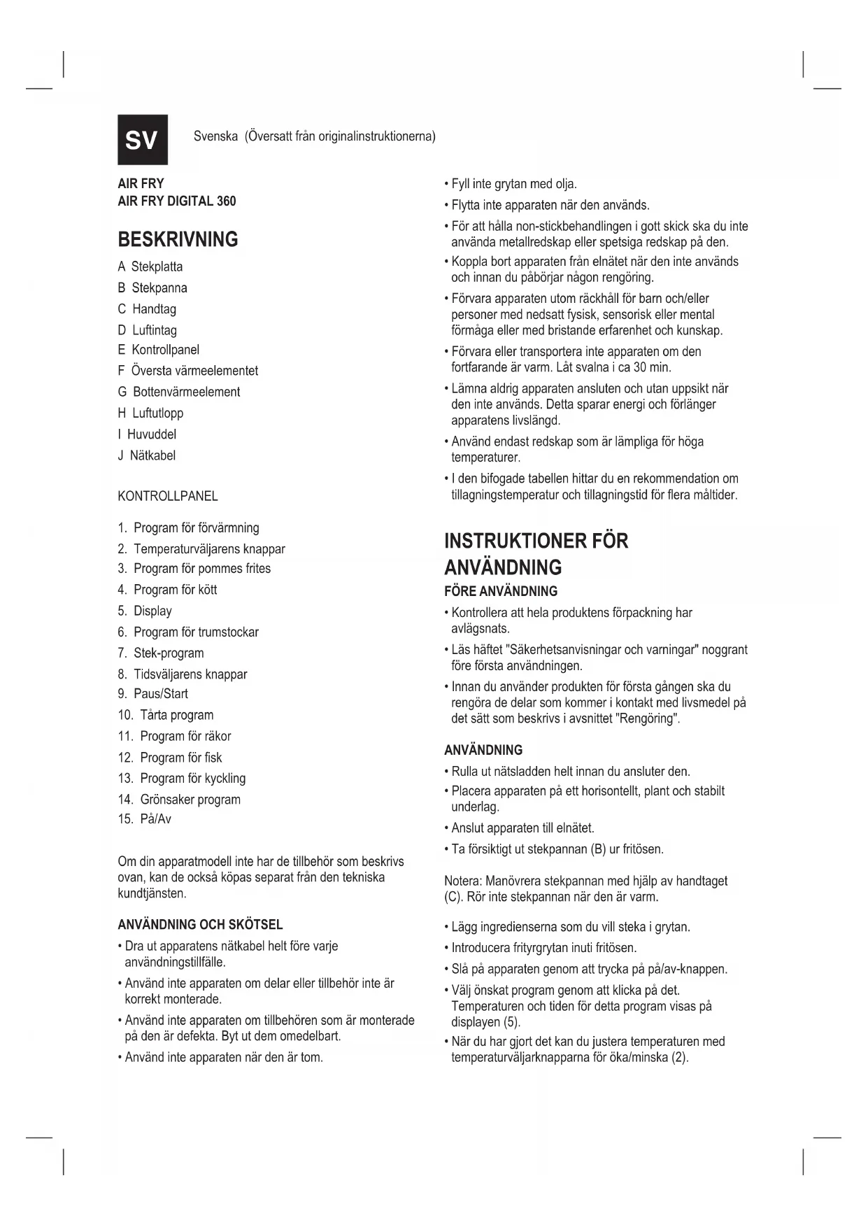 BRUKSANVISNING Air Fry Digital 360 TAURUS