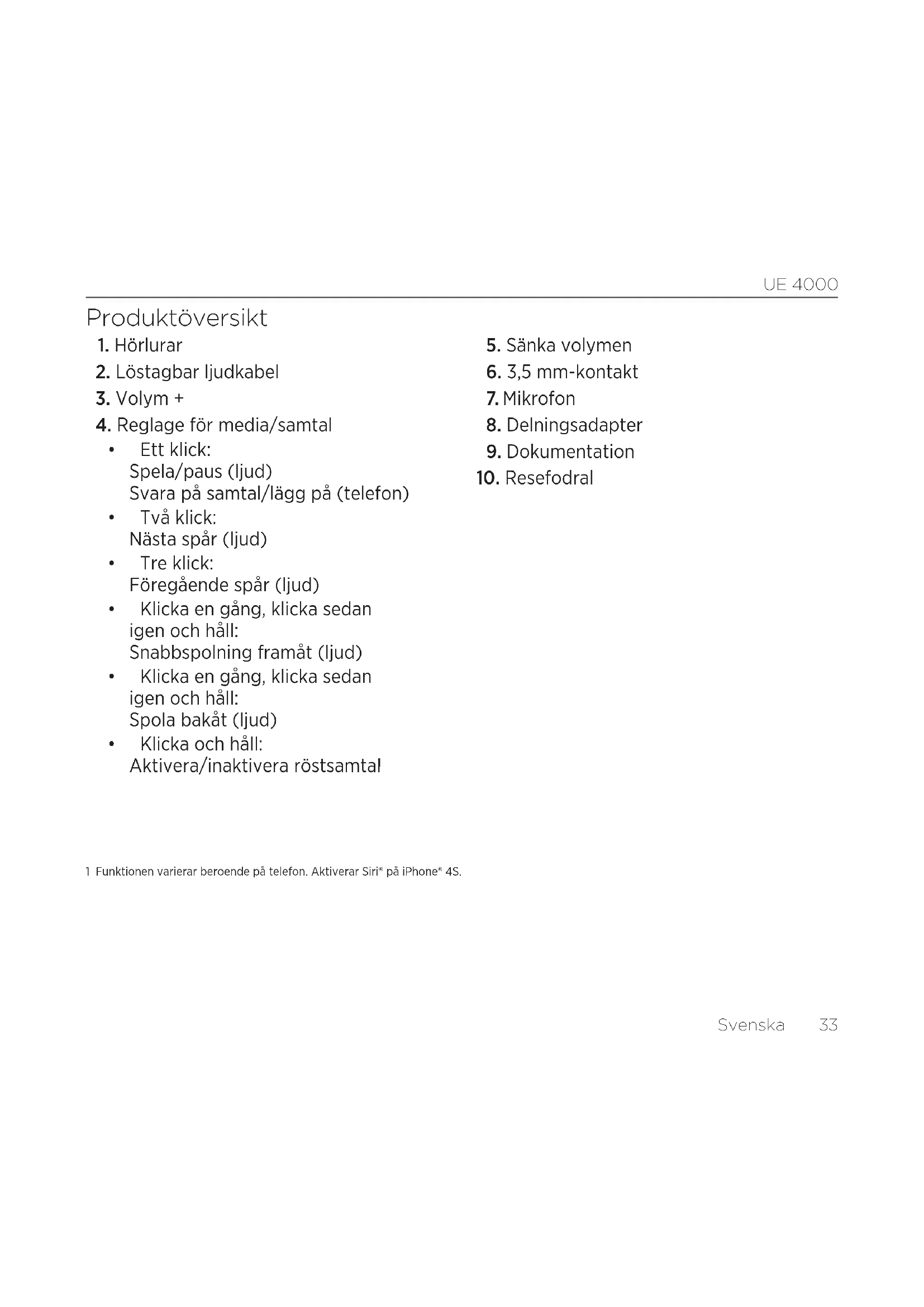10UE 4000 Svenska 33 Produktöversikt