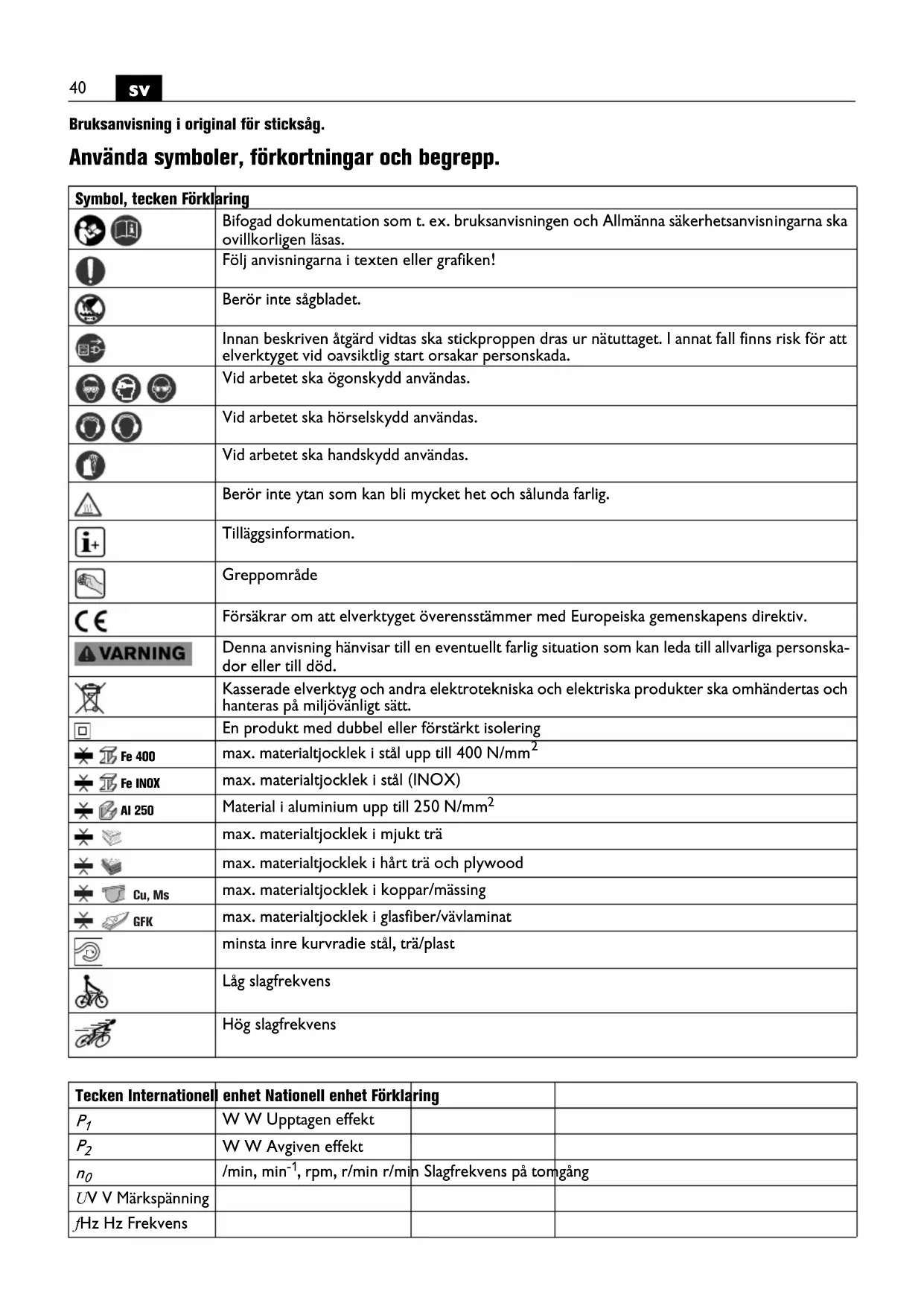 Använd inte detta elverktyg innan du nogrant LAST och fullständigt forstattenna instruktionsbok samt bifogade „Allmanna sakerhetsanvisningar"