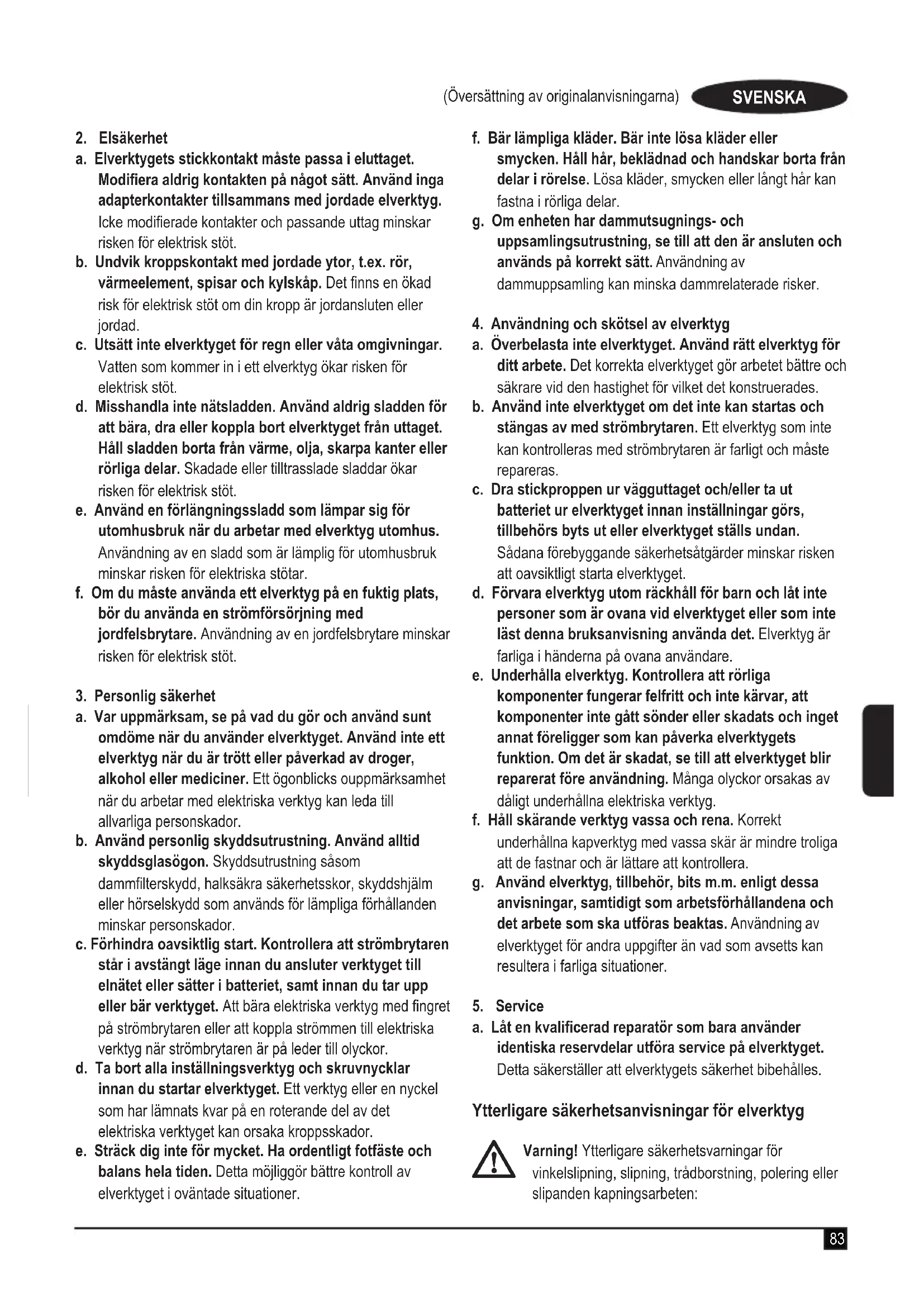 4. Användning och skötsel av elverktyg