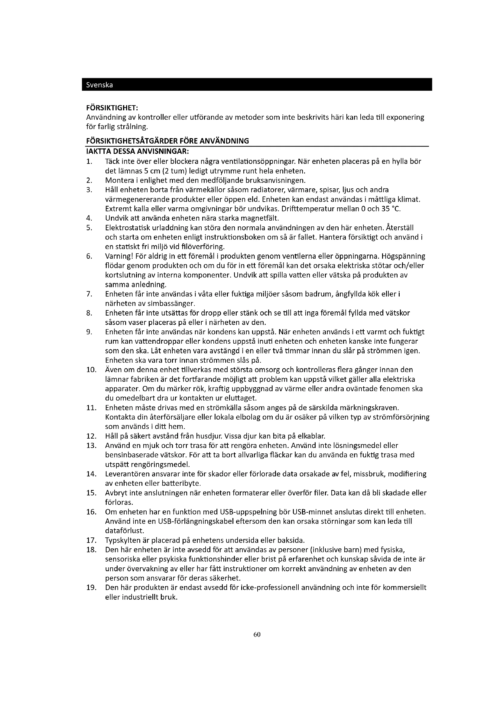 19. Den här produkten är endast avsedd för icke-professionell användning och inte för kommersiellt