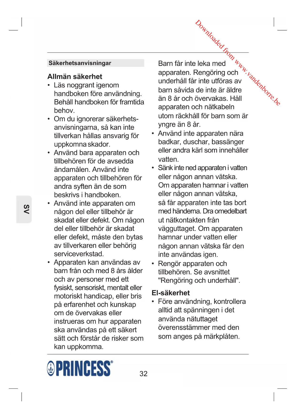 - Före användning, kontrollera alltid att spänningen i det använda nätuttaget överensämmer med den som anges på märkplåten. Downloaded from www.vandenborre.be33