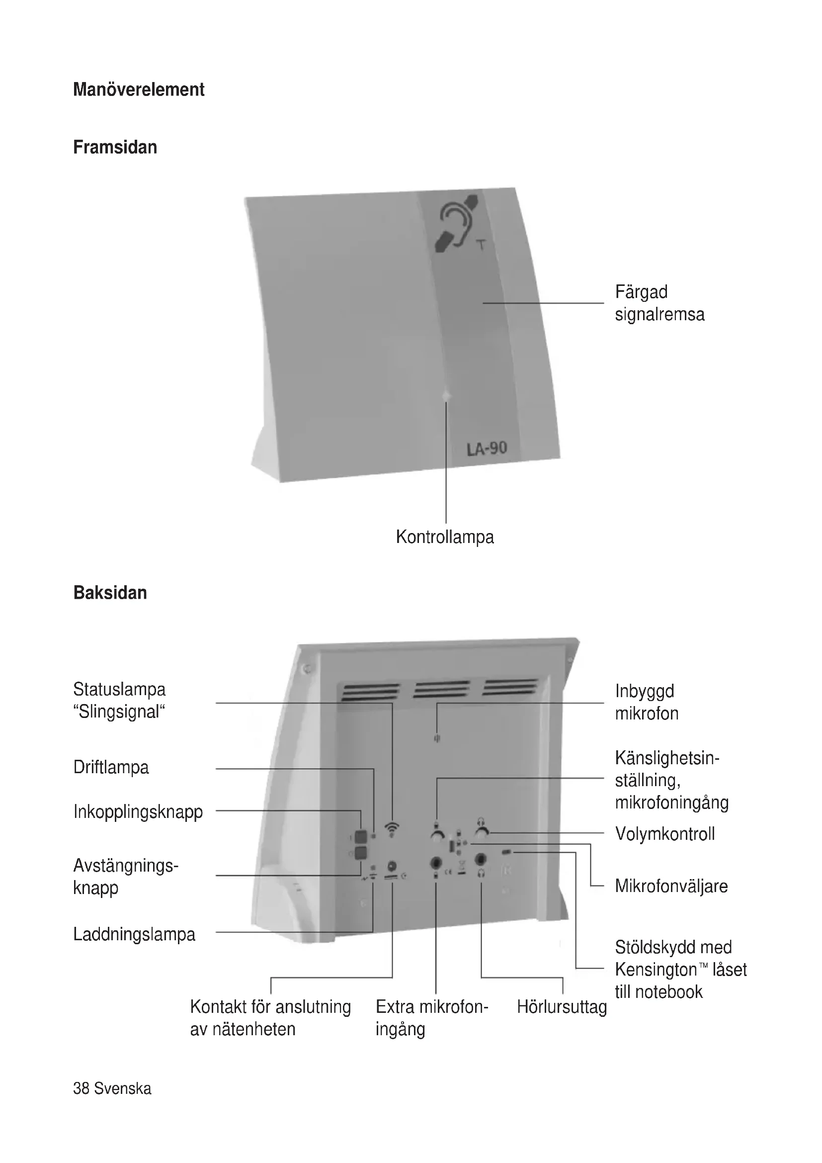 Slingsystemet leveras inställt i sitt skyddshölje. Det enda du behöver gör ar att placera «LA-90«-systemet på lamplig plats mellandig och din samtalspartner och ansluta det till elnätet.