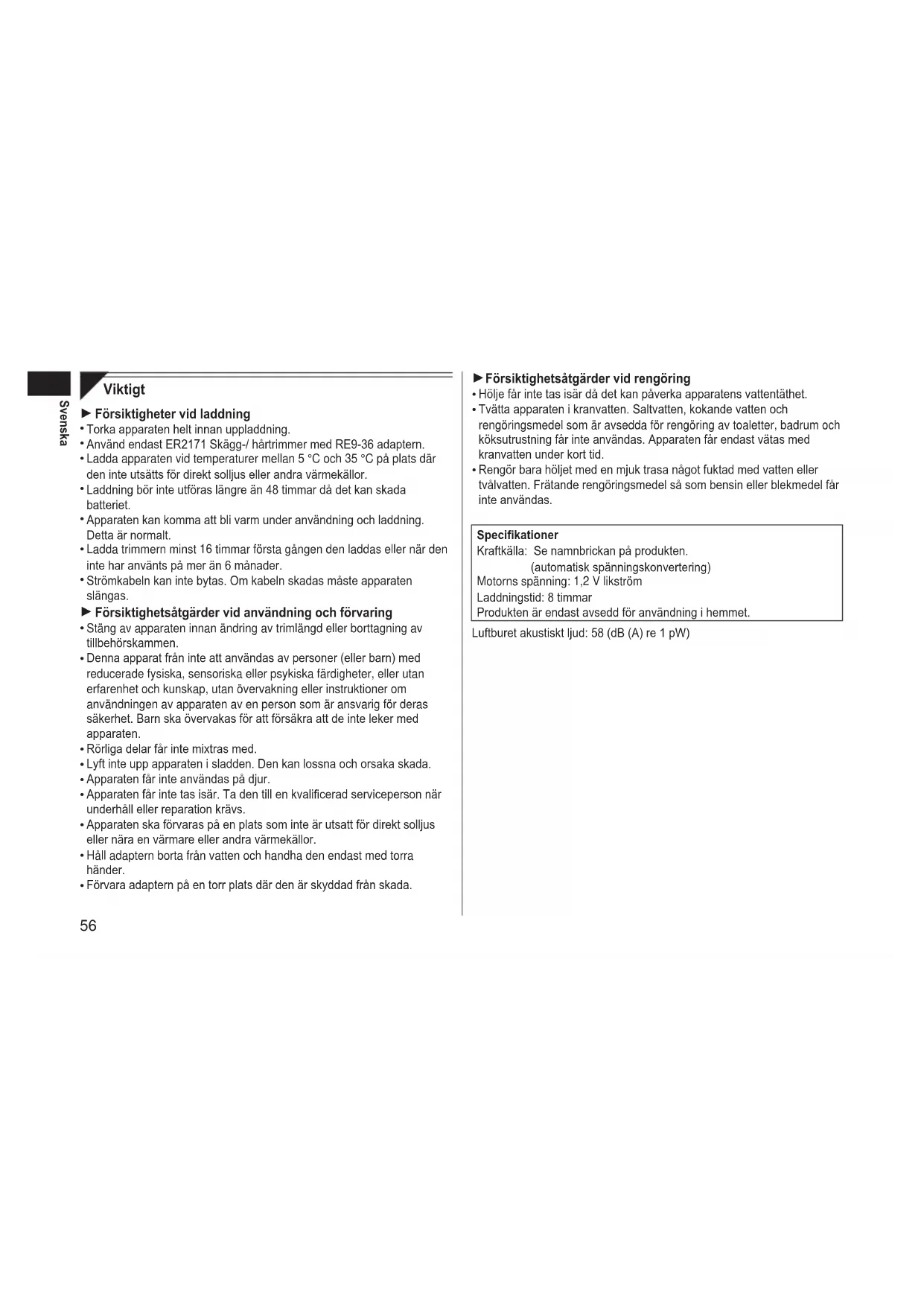 - Använd endast ER2171 Skagg-/ härtrimmer med RE9-36 adaptorn.