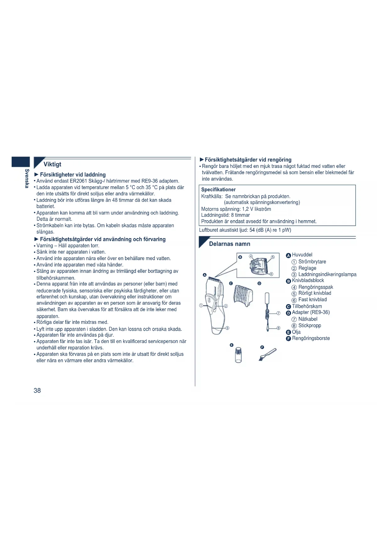 - Använd endast ER2061 Skägg-/ hårtrimmer med RE9-36 adaptern.