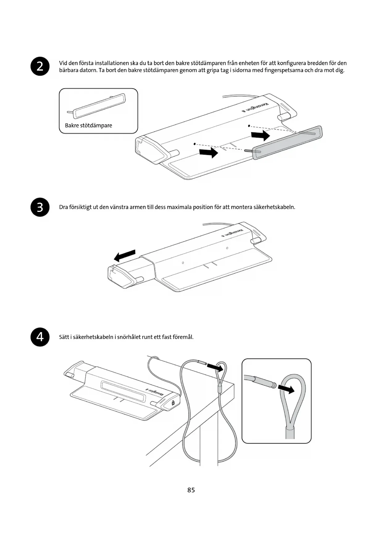 Dra forsiktigt ut den vänstra armen till dess maximala position for att montera sakerhetskabeln.