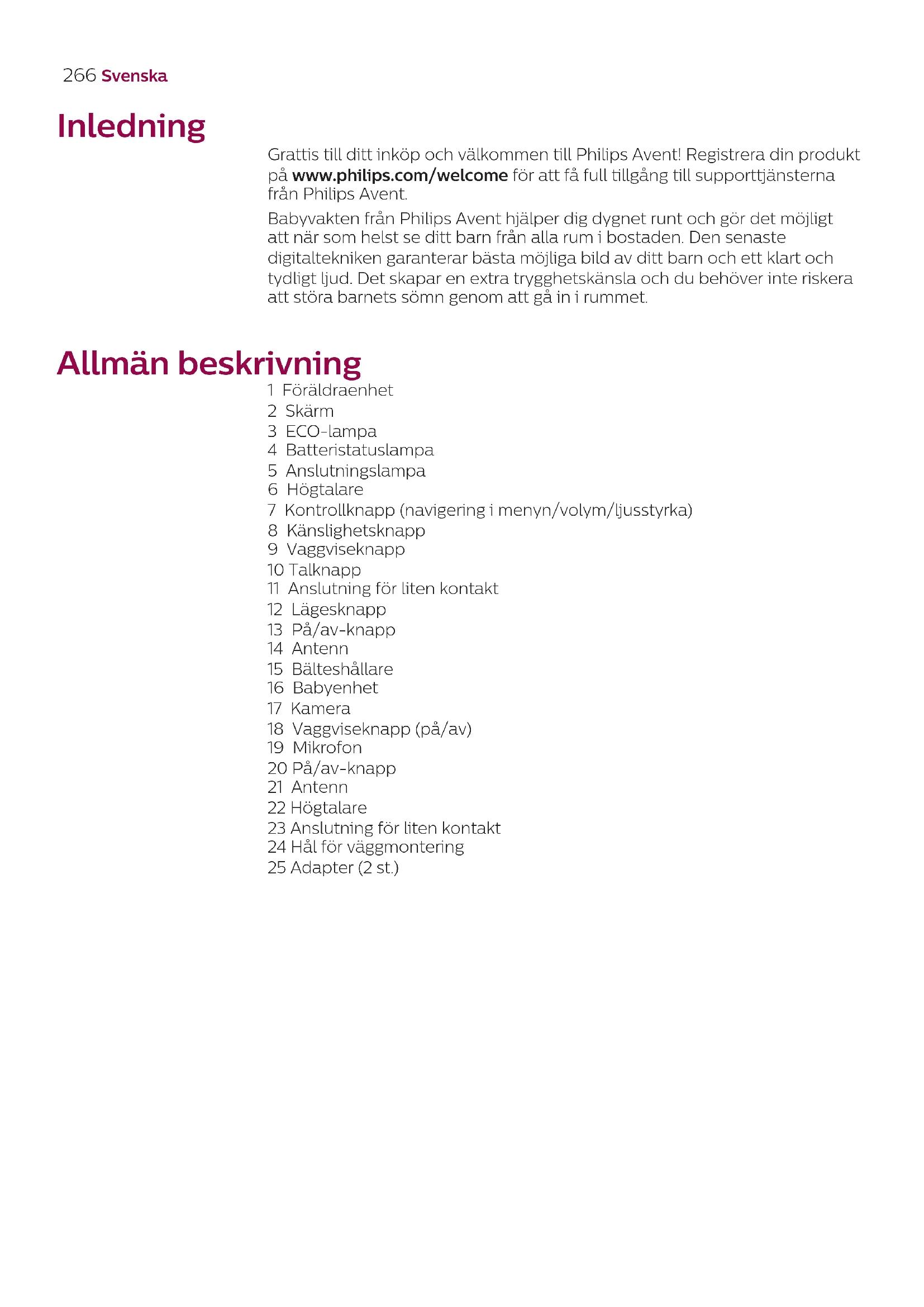 Grattis till ditt inköp och vällkommen till Philips Avent! Registrera din produit på www.philips.com/welcome für att fã full tillgang till supporttjansterna fran Philips Avent.