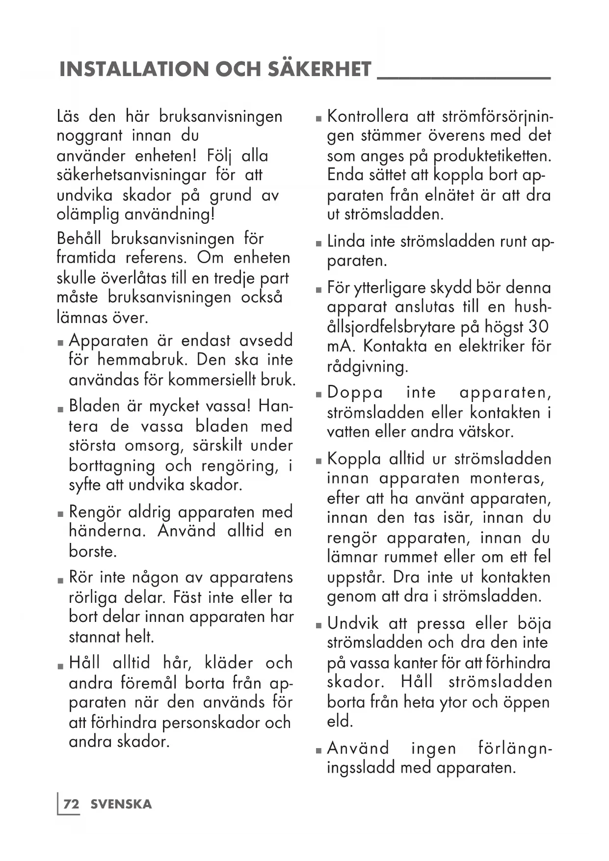 Använd ingen förlängn- ingssladd med apparaten.73 SVENSKA