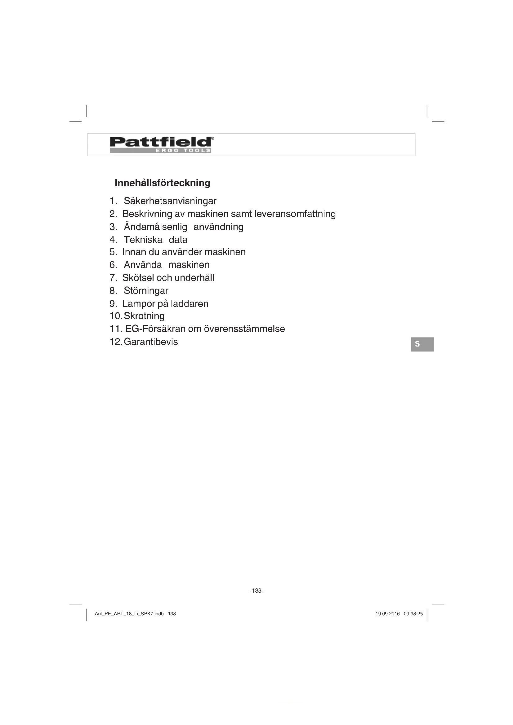 BRUKSANVISNING PEART 18 Li Pattfield