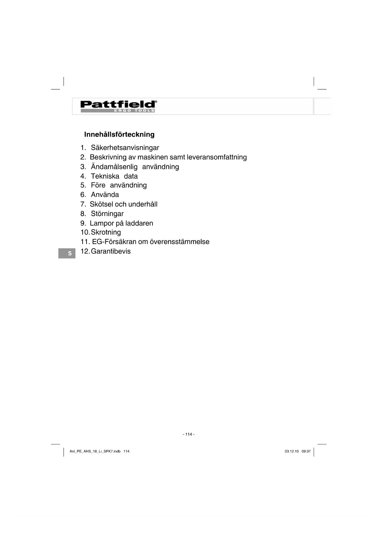 BRUKSANVISNING PEAHS 18 Li Pattfield